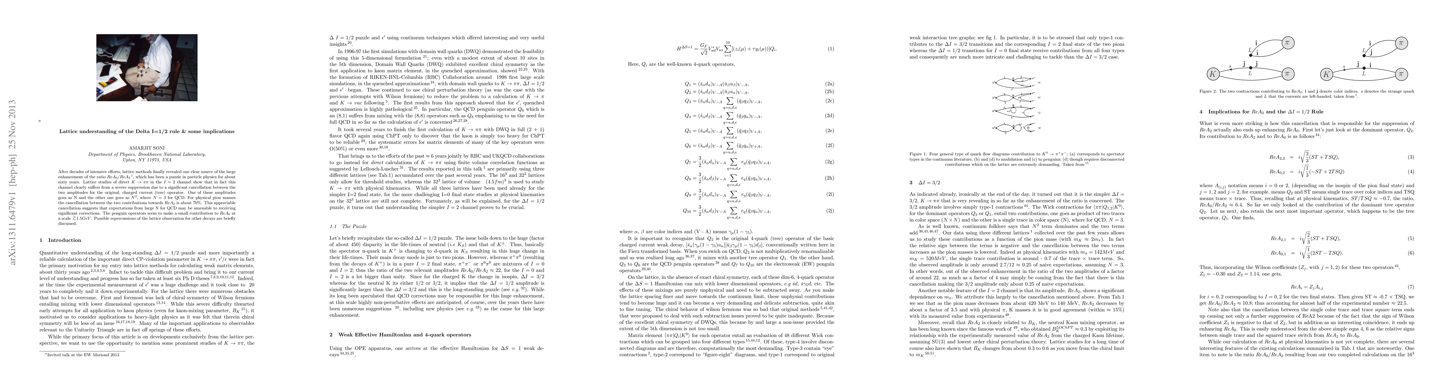 After decades of intensive efforts, lattice methods finally revealed one clear source of the large enhancement of the ratio $Re A_0/Re A_2$ \cite{RBC_UKQCD_PRL13}, which has been a puzzle in particle physics for about sixty years. Lattice studies of direct $K \to \pi \pi$ in the $I=2$ channel show that in fact this channel clearly suffers from a severe suppression due to a significant cancellation between the two amplitudes for the original, charged current (tree) operator. % [($\bar s_\alpha \gamma_mu (1 - \gamma_5) u_\alpha)(\bar u_\beta \gamma_mu(1-gamma_5)d_\beta$)], One of these amplitudes goes as N and the other one goes as $N^2$, where $N=3$ for QCD. For physical pion masses the cancellation between the two contributions towards $Re A_2$ is about $70\%$. This appreciable cancellation suggests that expectations from large N for QCD may be amenable to receiving significant corrections. The penguin operators seem to make a small contribution to $ReA_0$ at a scale $\gsim 1.5 GeV$. Possible repercussions of the lattice observation for other decays are briefly discussed.