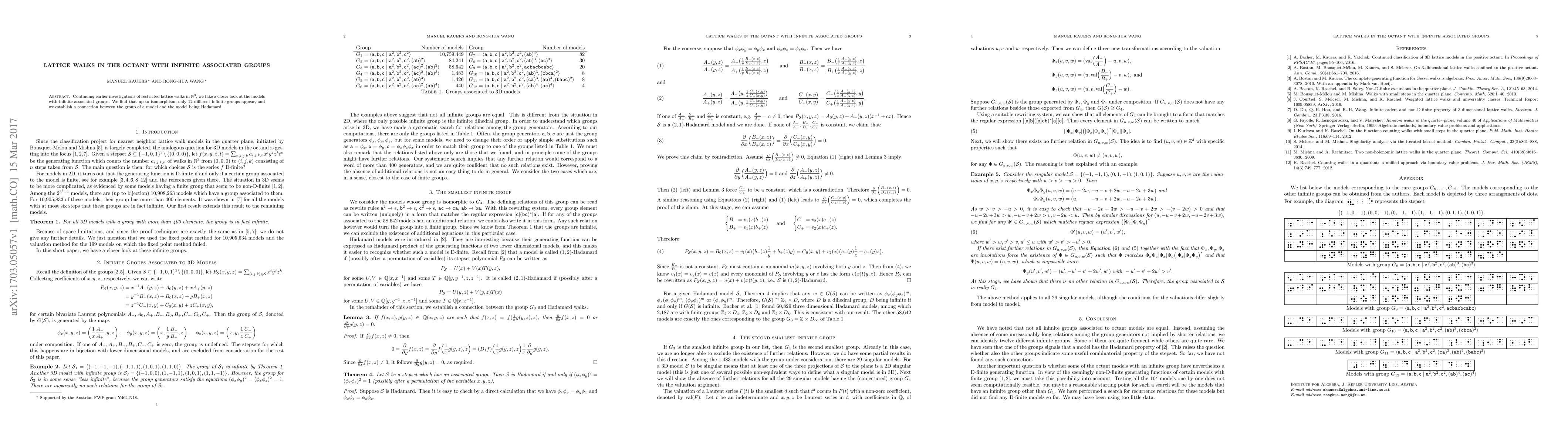 This research identifies 12 unique infinite groups in lattice walk models within the first octant, establishing a link between a model's group and its Hadamard property.