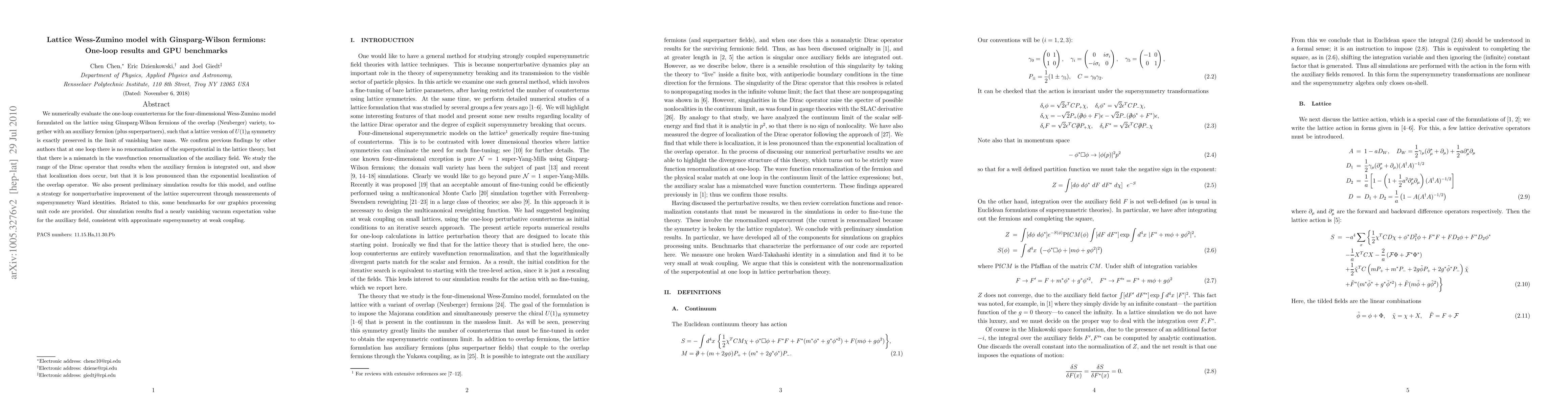 We numerically evaluate the one-loop counterterms for the four-dimensional Wess-Zumino model formulated on the lattice using Ginsparg-Wilson fermions of the overlap (Neuberger) variety, together with an auxiliary fermion (plus superpartners), such that a lattice version of $U(1)_R$ symmetry is exactly preserved in the limit of vanishing bare mass. We confirm previous findings by other authors that at one loop there is no renormalization of the superpotential in the lattice theory, but that there is a mismatch in the wavefunction renormalization of the auxiliary field. We study the range of the Dirac operator that results when the auxiliary fermion is integrated out, and show that localization does occur, but that it is less pronounced than the exponential localization of the overlap operator. We also present preliminary simulation results for this model, and outline a strategy for nonperturbative improvement of the lattice supercurrent through measurements of supersymmetry Ward identities. Related to this, some benchmarks for our graphics processing unit code are provided. Our simulation results find a nearly vanishing vacuum expectation value for the auxiliary field, consistent with approximate supersymmetry at weak coupling.