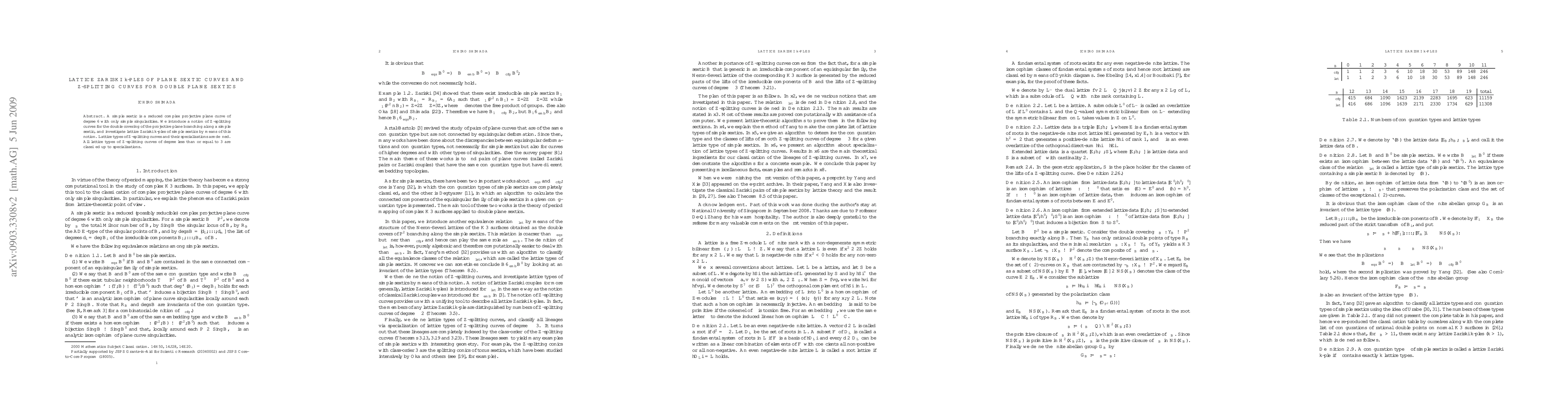 This paper introduces Z-splitting curves for double coverings of the projective plane over simple sextic curves and explores lattice Zariski k-ples. It classifies lattice types of these curves up to specializations for degrees ≤ 3.