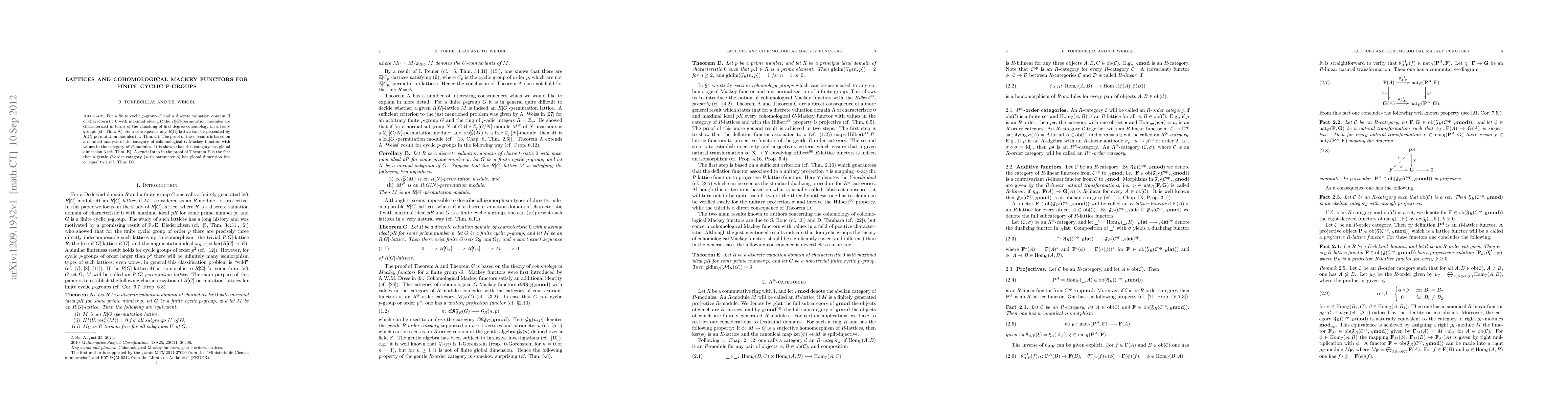 For a finite cyclic p-group G and a discrete valuation domain R of characteristic 0 with maximal ideal pR the R[G]-permutation modules are characterized in terms of the vanishing of first degree cohomology on all sub- groups (cf. Thm. A). As a consequence any R[G]-lattice can be presented by R[G]-permutation modules (cf. Thm. C). The proof of these results is based on a detailed analysis of the category of cohomological G-Mackey functors with values in the category of R-modules. It is shown that this category has global dimension 3 (cf. Thm. E). A crucial step in the proof of Theorem E is the fact that a gentle R-order category (with parameter p) has global dimension less or equal to 2 (cf. Thm. D).