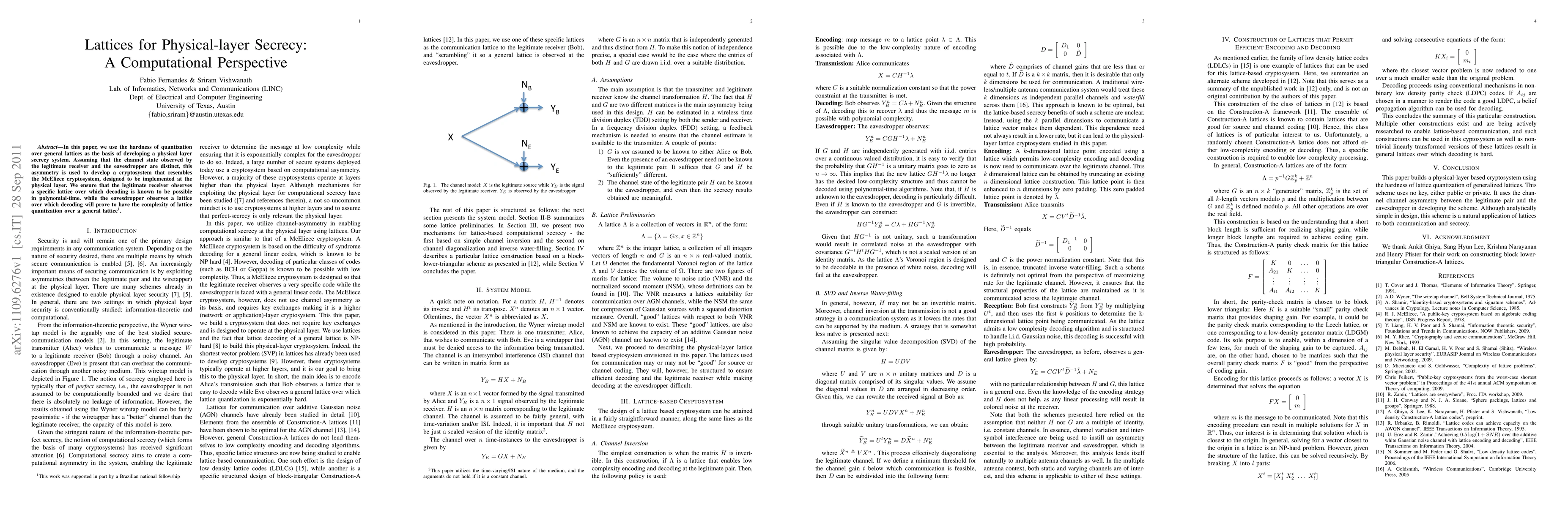 In this paper, we use the hardness of quantization over general lattices as the basis of developing a physical layer secrecy system. Assuming that the channel state observed by the legitimate receiver and the eavesdropper are distinct, this asymmetry is used to develop a cryptosystem that resembles the McEliece cryptosystem, designed to be implemented at the physical layer. We ensure that the legitimate receiver observes a specific lattice over which decoding is known to be possible in polynomial-time. while the eavesdropper observes a lattice over which decoding will prove to have the complexity of lattice quantization over a general lattice