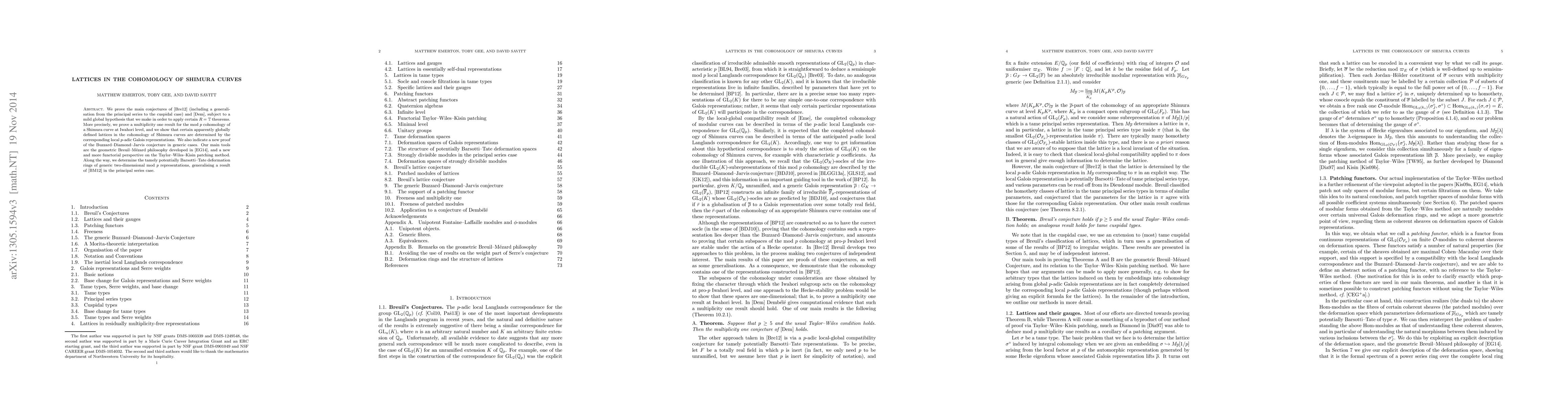 We prove conjectures of Breuil and Breuil-Dembele (C. Breuil, "Sur un probleme de compatibilite local-global modulo p pour GL(2)"), including a generalisation from the principal series to the cuspidal case, subject to a mild global hypothesis that we make in order to apply certain R=T theorems. More precisely, we prove a multiplicity one result for the mod p cohomology of a Shimura curve at Iwahori level, and we show that certain apparently globally defined lattices in the cohomology of Shimura curves are determined by the corresponding local p-adic Galois representations. We also indicate a new proof of the Buzzard-Diamond-Jarvis conjecture in generic cases. Our main tools are the geometric Breuil-Mezard philosophy developed by two of the authors, and a new and more functorial perspective on the Taylor-Wiles-Kisin patching method. Along the way, we determine the tamely potentially Barsotti-Tate deformation rings of generic two-dimensional mod p representations, generalising a result of Breuil-Mezard in the principal series case.