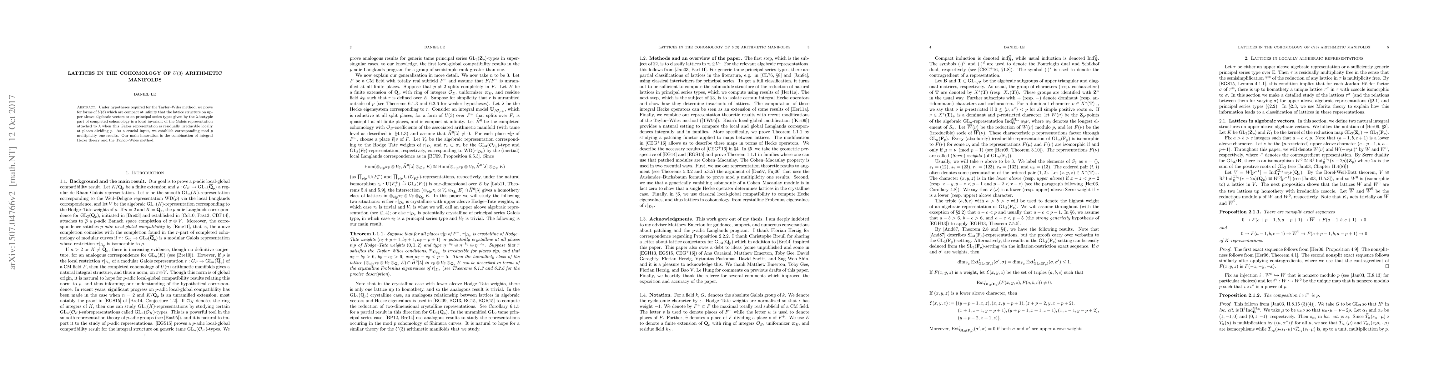 Researchers prove that a specific lattice structure in the cohomology of $U(3)$ arithmetic manifolds is a local invariant of certain Galois representations, with implications for understanding these representations.