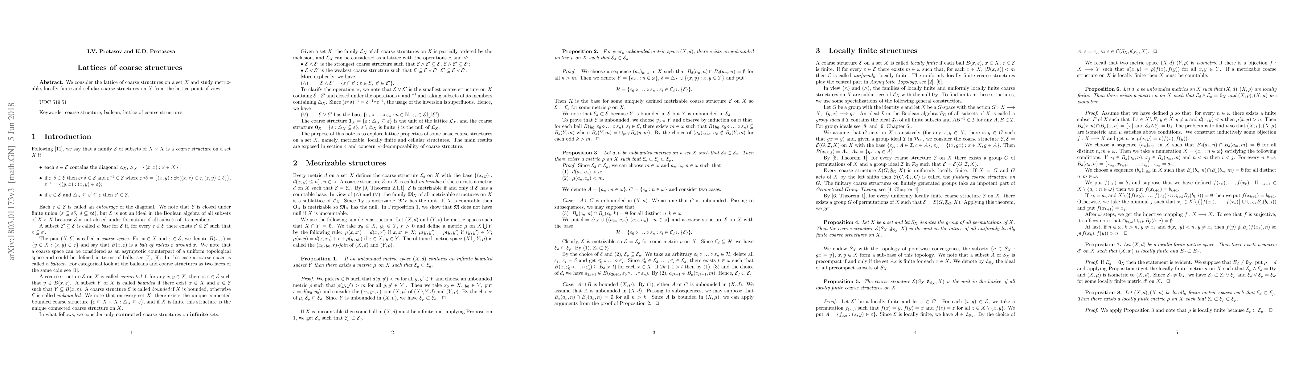 We consider the lattice of coarse structures on a set $X$ and study metrizable, locally finite and cellular coarse structures on $X$ from the lattice point of view.