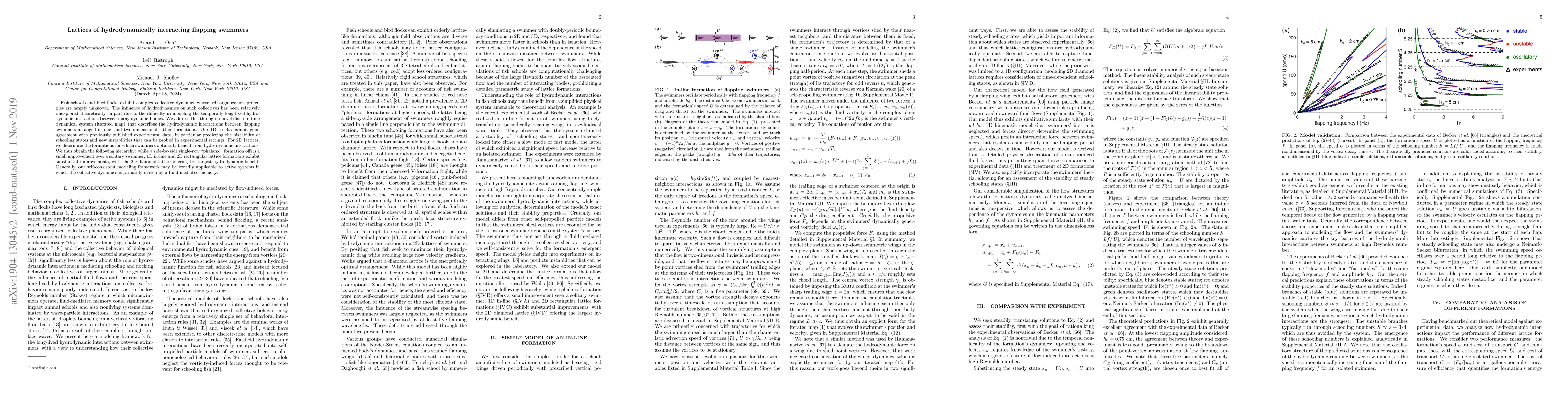 This paper develops a novel discrete-time dynamical system to model hydrodynamic interactions between flapping swimmers in lattice formations, revealing bistability in 1D and optimal formations in 2D that maximize hydrodynamic benefits, with the diamond lattice providing the greatest advantage. The framework can be applied to other fluid-mediated active systems.