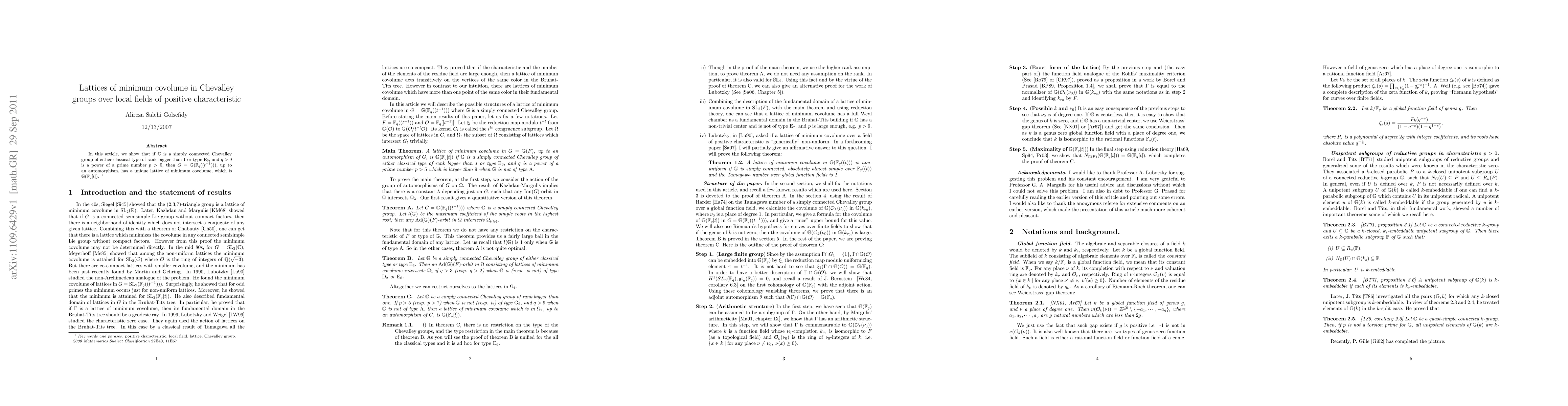 In this article, we show that if G is a simply connected Chevalley group of either classical type of rank bigger than 1 or type E6, and q > 9 is a power of a prime number p > 5, then G = G(F_q((1/t))), up to an automorphism, has a unique lattice of minimum covolume, which is G(F_q[t]).