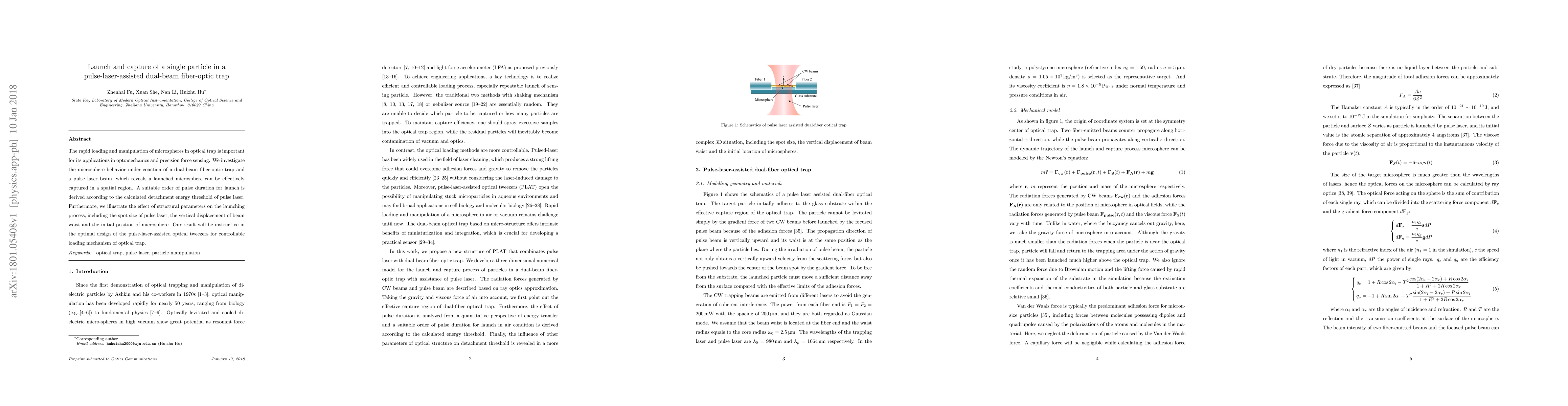This paper explores the efficient launch and capture of microspheres using a dual-beam fiber-optic trap and a pulse laser, revealing optimal pulse durations for effective capture. It also examines how structural parameters like laser spot size and initial microsphere position influence the launching process.