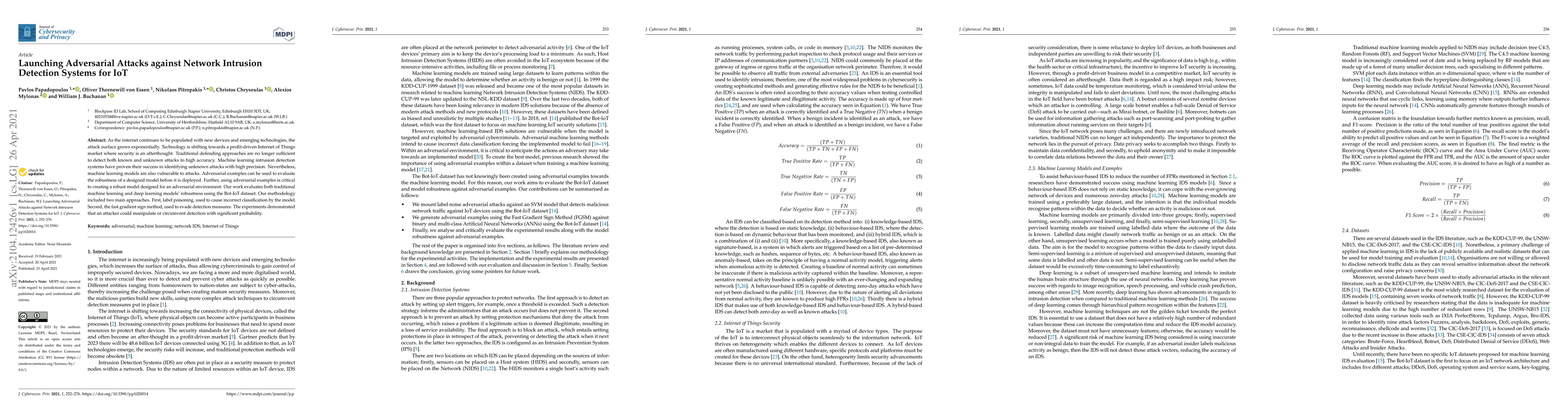 This paper investigates the vulnerabilities of machine learning models used in network intrusion detection systems for IoT, employing adversarial attacks like label poisoning and the fast gradient sign method to demonstrate significant detection evasion. The study highlights the need for robust models to counter adversarial examples in an increasingly insecure IoT environment.