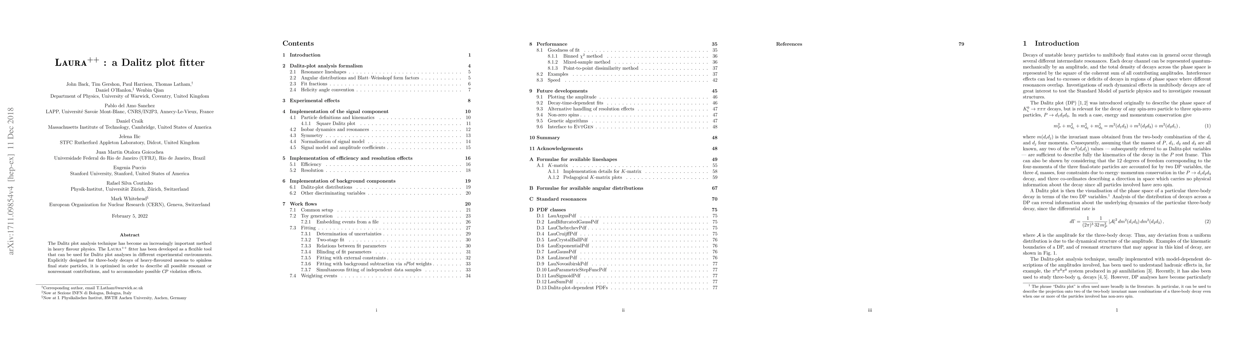 Laura++ is a versatile Dalitz plot fitter designed for analyzing three-body decays of heavy-flavoured mesons, capable of describing both resonant and nonresonant contributions, and accommodating CP violation effects. It is tailored for use in various experimental settings in heavy flavour physics.