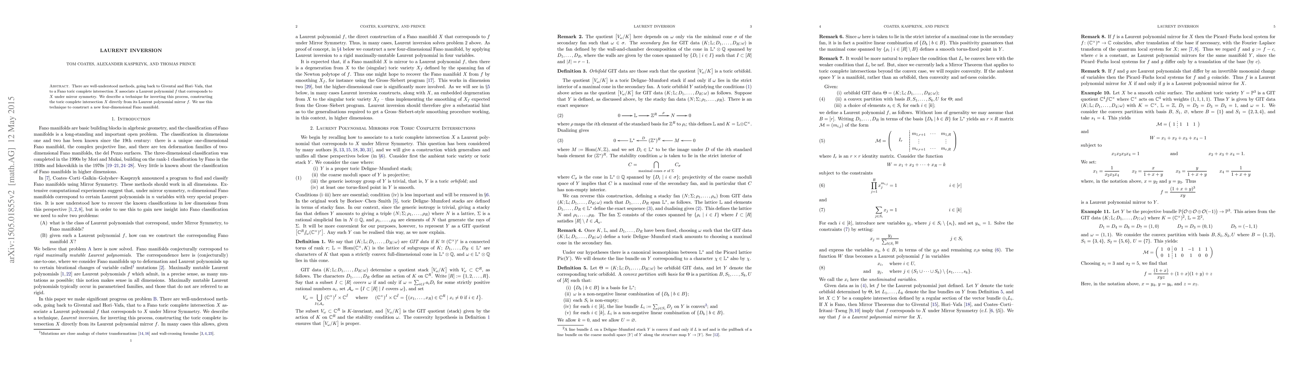 Liana Heuberger, Tom Coates, Alexander M. Kasprzyk