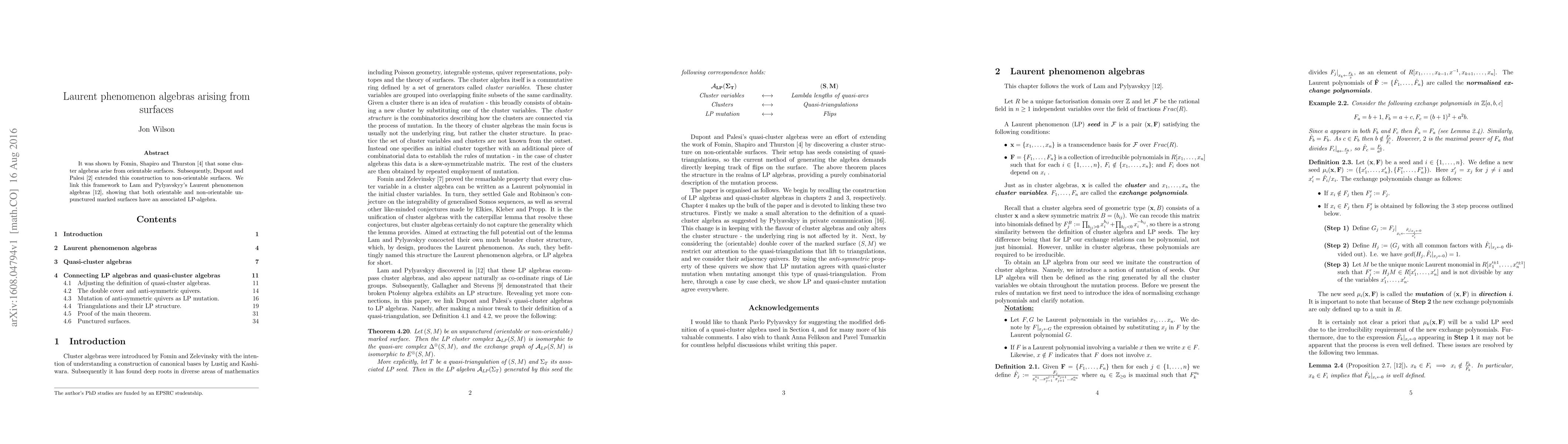 The research extends previous work by Fomin, Shapiro, and Thurston and Dupont and Palesi, providing a unified framework for understanding LP-algebras in the context of both orientable and non-orientable surfaces.