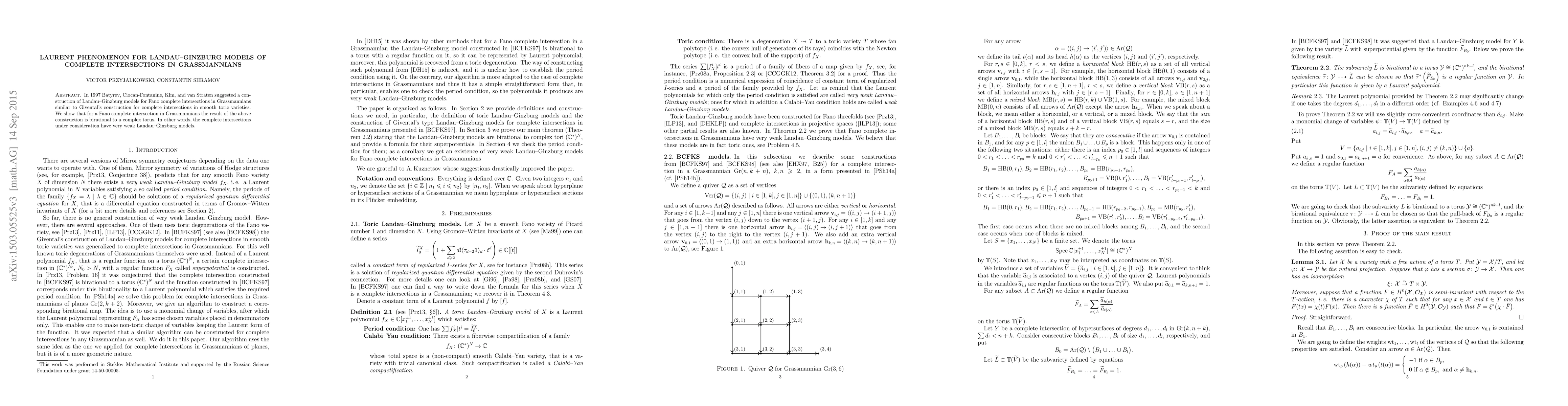 In 1997 Batyrev, Ciocan-Fontanine, Kim, and van Straten suggested a construction of Landau--Ginzburg models for Fano complete intersections in Grassmannians similar to Givental's construction for complete intersections in smooth toric varieties. We show that for a Fano complete intersection in Grassmannians the result of the above construction is birational to a complex torus. In other words, the complete intersections under consideration have very weak Landau--Ginzburg models.