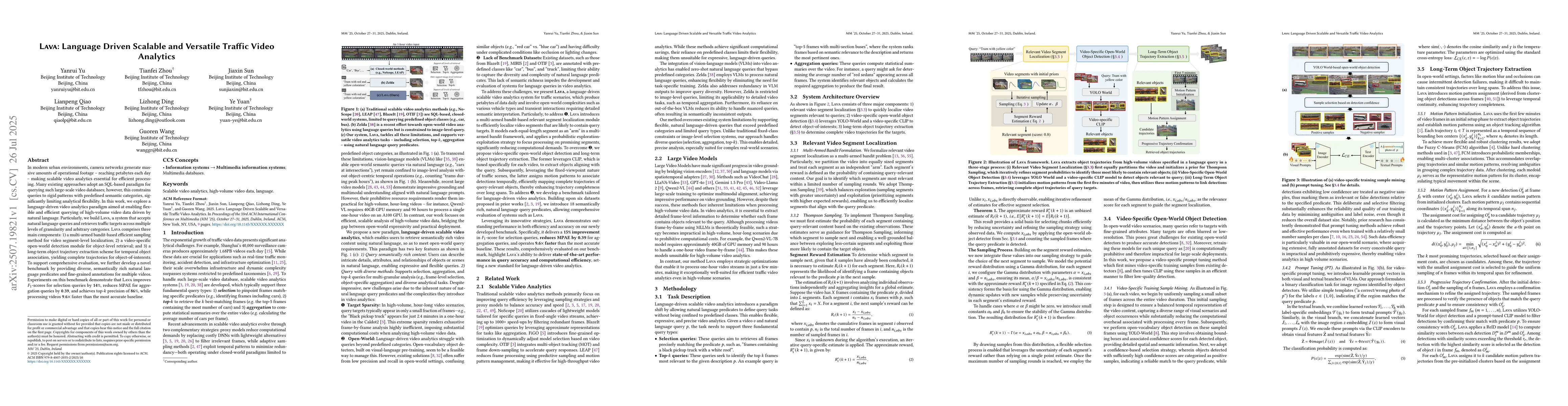 In modern urban environments, camera networks generate massive amounts of operational footage -- reaching petabytes each day -- making scalable video analytics essential for efficient processing. Many existing approaches adopt an SQL-based paradigm for querying such large-scale video databases; however, this constrains queries to rigid patterns with predefined semantic categories, significantly limiting analytical flexibility. In this work, we explore a language-driven video analytics paradigm aimed at enabling flexible and efficient querying of high-volume video data driven by natural language. Particularly, we build \textsc{Lava}, a system that accepts natural language queries and retrieves traffic targets across multiple levels of granularity and arbitrary categories. \textsc{Lava} comprises three main components: 1) a multi-armed bandit-based efficient sampling method for video segment-level localization; 2) a video-specific open-world detection module for object-level retrieval; and 3) a long-term object trajectory extraction scheme for temporal object association, yielding complete trajectories for object-of-interests. To support comprehensive evaluation, we further develop a novel benchmark by providing diverse, semantically rich natural language predicates and fine-grained annotations for multiple videos. Experiments on this benchmark demonstrate that \textsc{Lava} improves $F_1$-scores for selection queries by $\mathbf{14\%}$, reduces MPAE for aggregation queries by $\mathbf{0.39}$, and achieves top-$k$ precision of $\mathbf{86\%}$, while processing videos $ \mathbf{9.6\times} $ faster than the most accurate baseline.