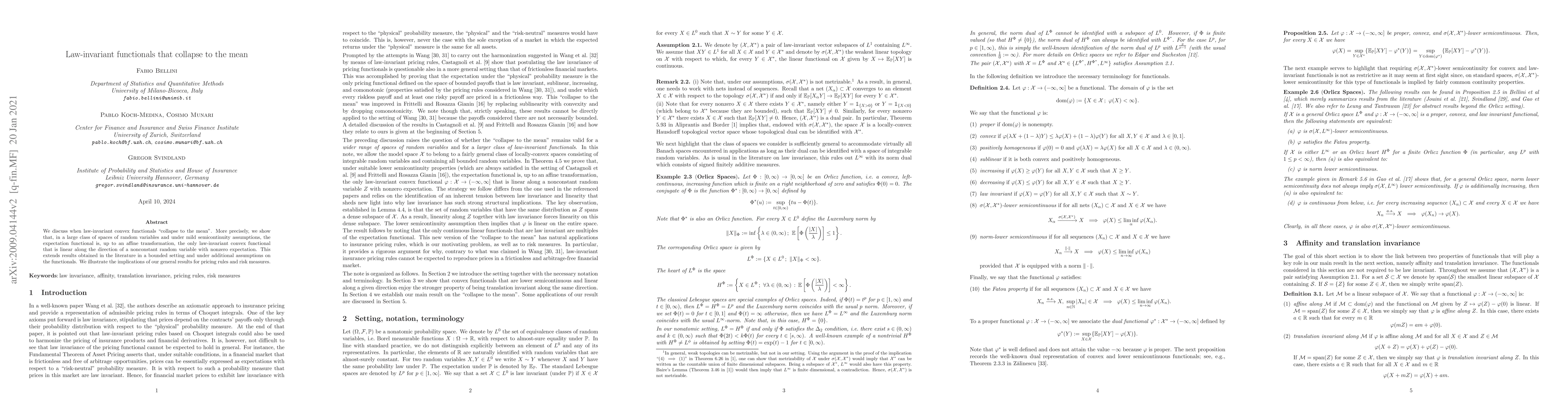This paper investigates law-invariant convex functionals that "collapse to the mean," demonstrating that the expectation functional is the only such functional linear along nonconstant random variables with nonzero expectations, extending previous results in a broader setting. The findings have implications for pricing rules and risk measures.