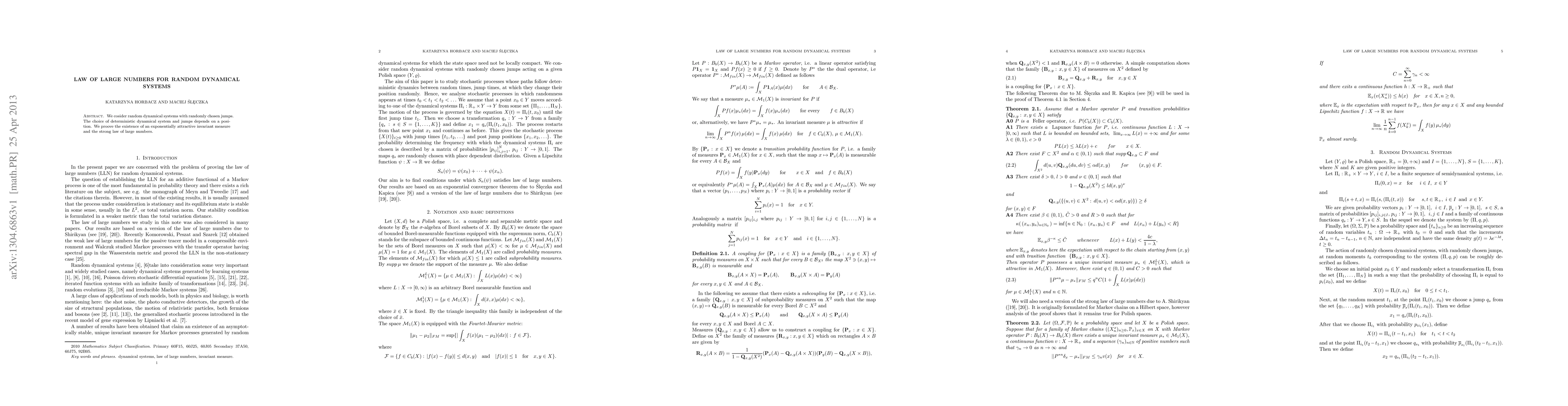 Summary: The paper proves the existence of an exponentially attractive invariant measure and establishes the strong law of large numbers for random dynamical systems with position-dependent deterministic dynamics and randomly chosen jumps.