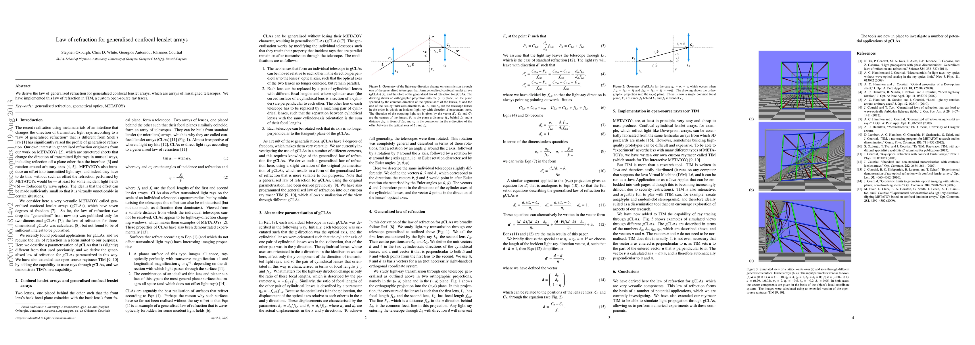 We derive the law of generalised refraction for generalised confocal lenslet arrays, which are arrays of misaligned telescopes. We have implemented this law of refraction in TIM, a custom open-source ray tracer.