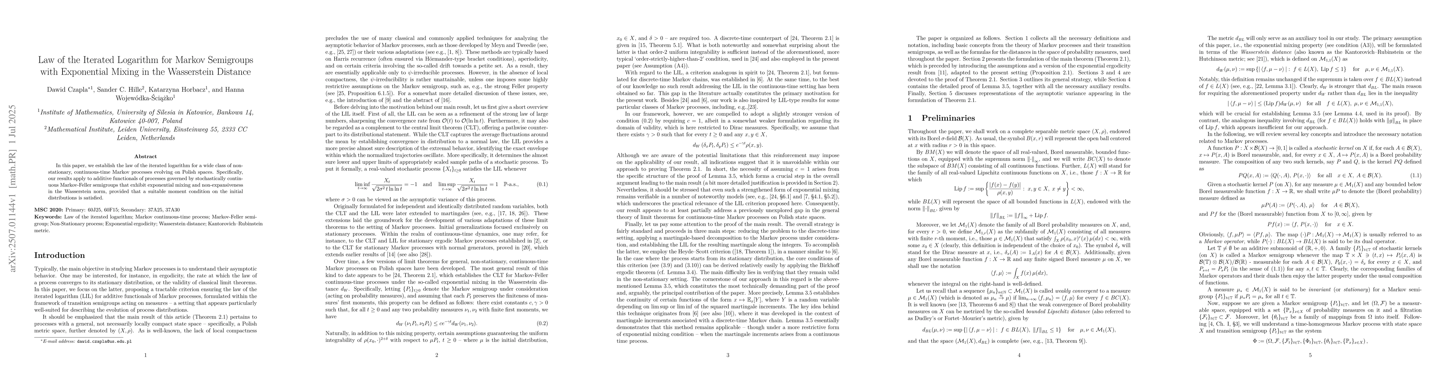 This research paper presents a law of the iterated logarithm for non-stationary Markov processes on Polish spaces, applicable to additive functionals of processes with stochastically continuous Markov-Feller semigroups. The results hold under exponential mixing, non-expansiveness in Wasserstein norm, and a moment condition on initial distributions.