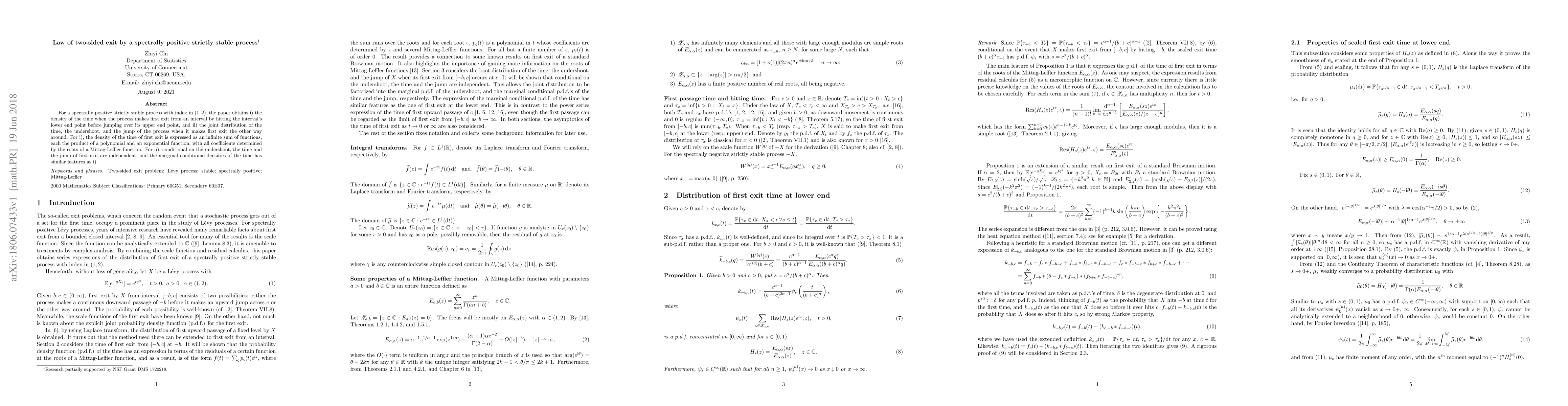 This paper investigates the first exit times of a spectrally positive strictly stable process with index in (1,2). It derives the density of the time when the process exits an interval by hitting the lower end first, expressed as an infinite sum involving polynomials and exponentials. It also finds the joint distribution of the first exit time and the jump, showing independence conditional on the undershoot, with marginal densities sharing similar characteristics.