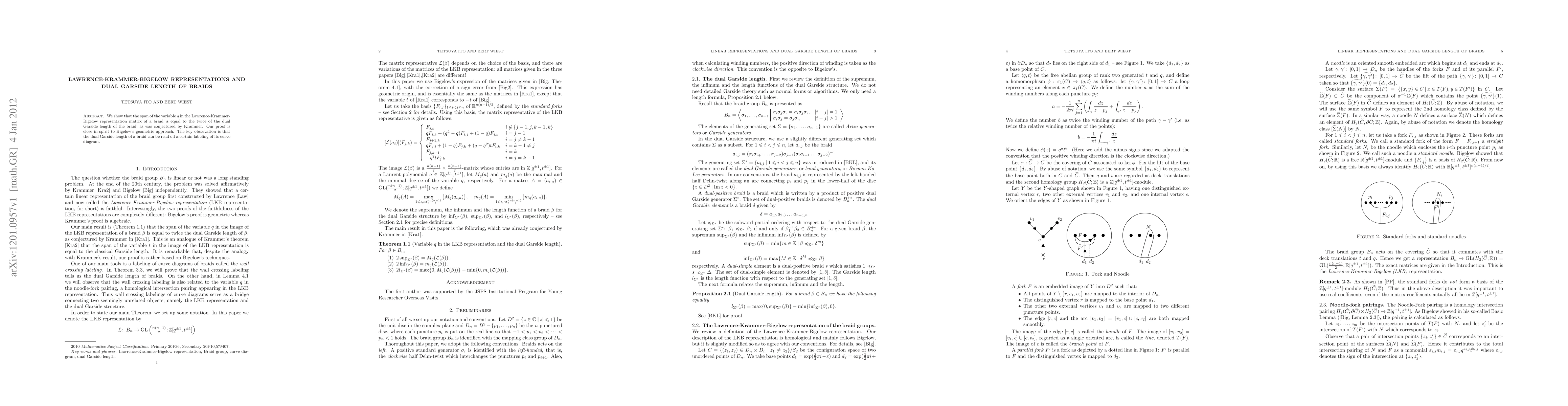 Summary: This paper proves that the span of the variable $q$ in the Lawrence-Krammer-Bigelow representation matrix of a braid equals twice the dual Garside length of the braid, confirming a conjecture by Krammer. The proof leverages a geometric approach similar to Bigelow's, identifying the dual Garside length through a specific labeling of the braid's curve diagram.