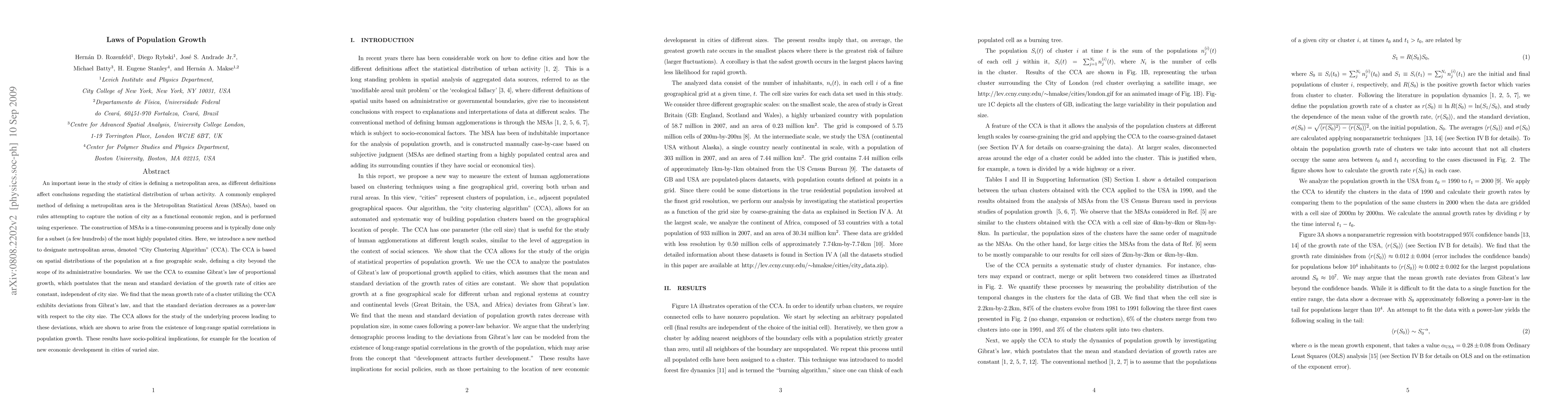 This research introduces the City Clustering Algorithm (CCA) to define metropolitan areas beyond administrative boundaries, analyzing population growth using Gibrat's law. Deviations from Gibrat's law are found, with standard deviation decreasing as a power-law with city size, attributed to long-range spatial correlations in population growth. The findings have socio-political implications for economic development in cities.
