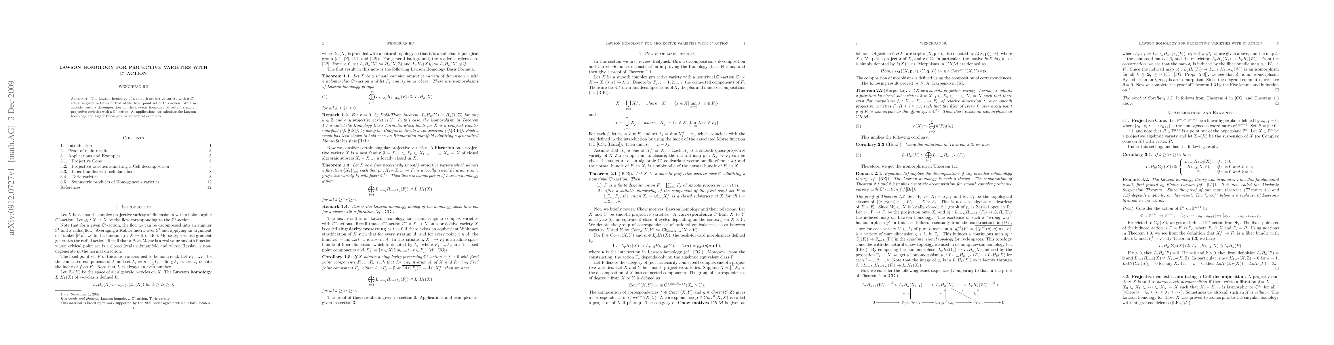 This paper computes the Lawson homology for smooth and singular projective varieties with a $\C^*$-action, expressing it in terms of the fixed point set's homology. It applies these results to calculate specific examples' Lawson homology and higher Chow groups.