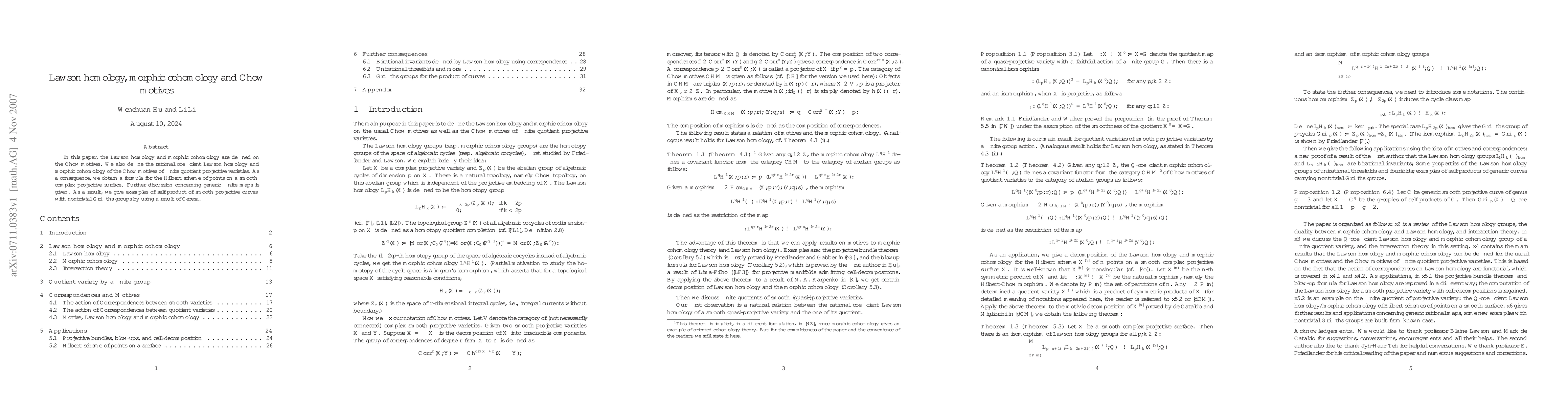 This paper defines Lawson homology and morphic cohomology on Chow motives, extending these concepts to finite quotient projective varieties with rational coefficients. It derives a formula for the Hilbert scheme of points on a smooth complex projective surface and provides examples of self-products of smooth projective curves with nontrivial Griffiths groups.