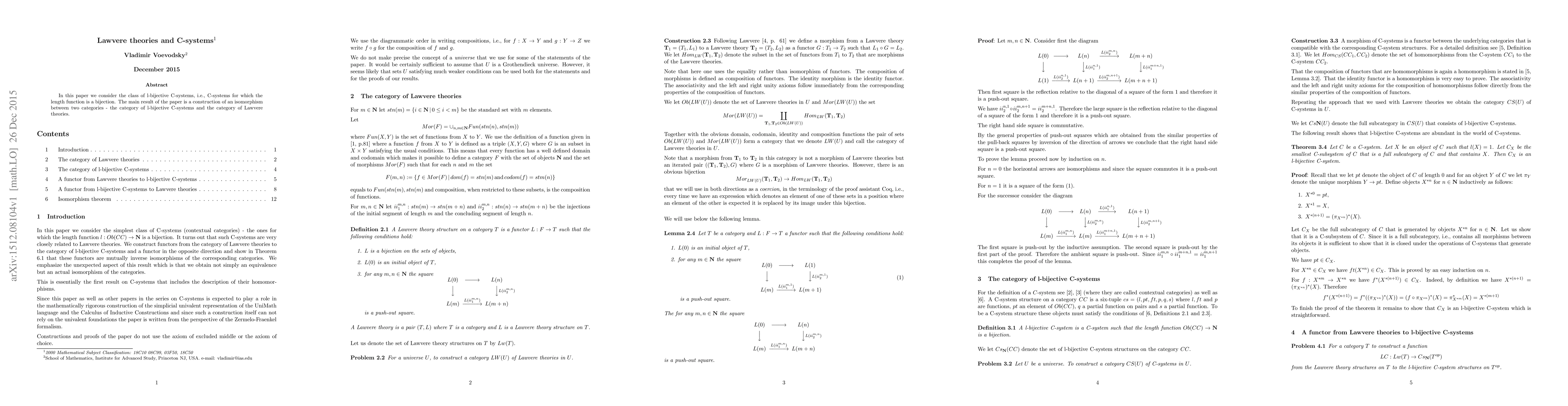 Researchers established an isomorphism between l-bijective C-systems and Lawvere theories, demonstrating a connection between two mathematical concepts.