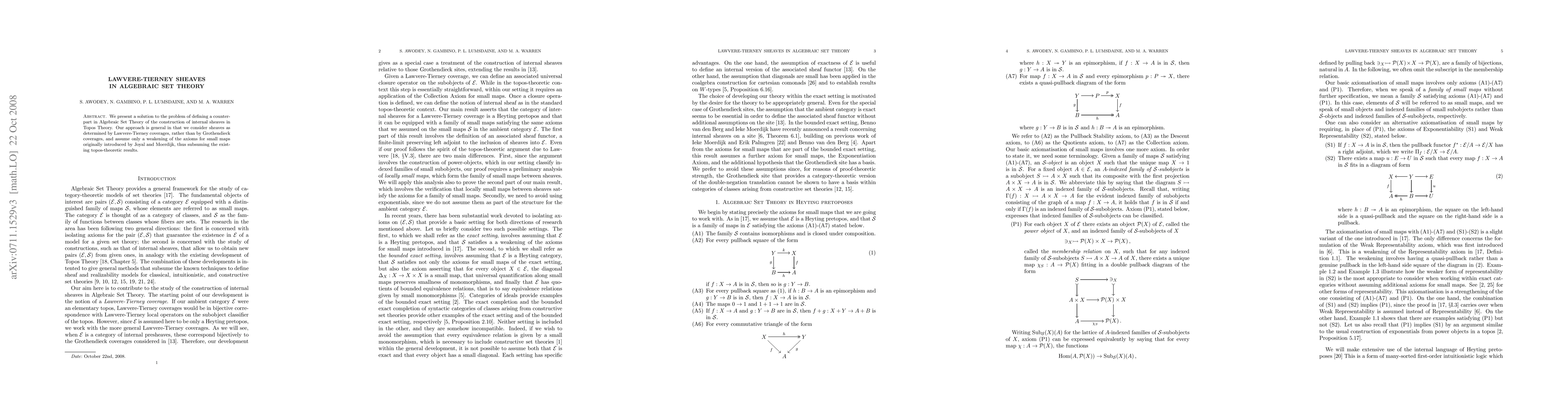 This paper defines internal sheaves in Algebraic Set Theory using Lawvere-Tierney coverages, offering a general approach that extends existing topos-theoretic results by relaxing Joyal and Moerdijk's axioms for small maps.