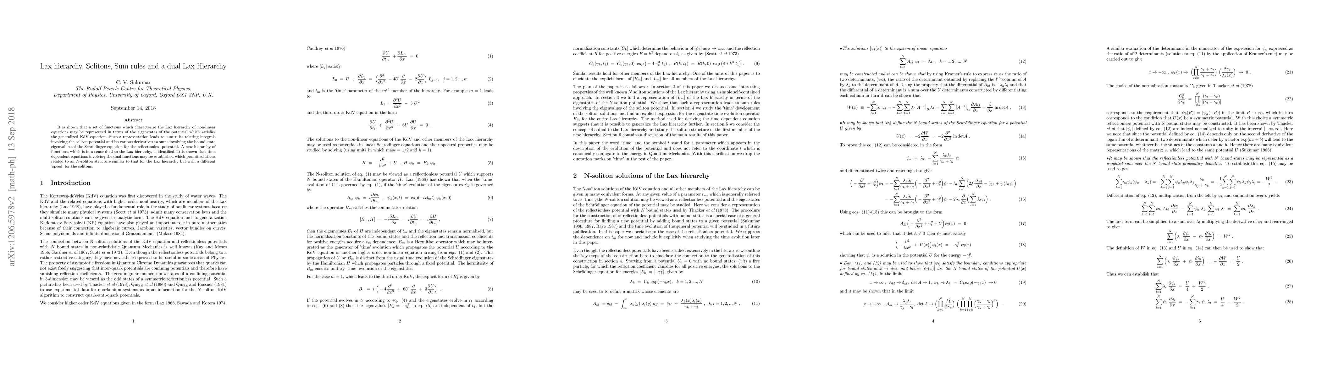 The paper introduces a dual Lax hierarchy and associated sumrules, providing a new perspective on soliton structures and their time evolution in non-linear systems.