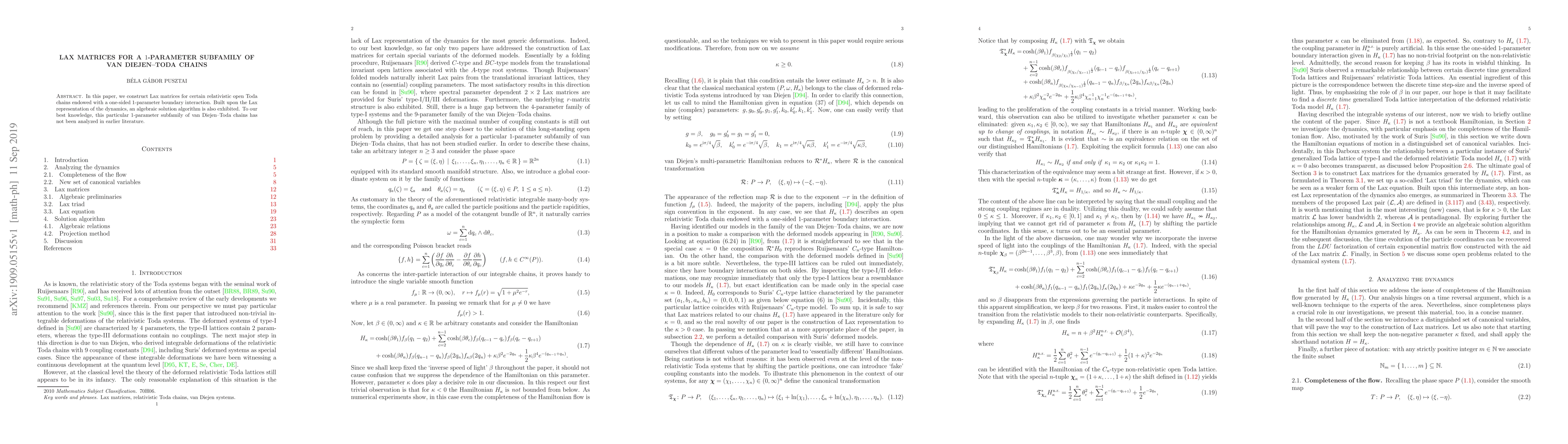 Researchers created Lax matrices for a specific type of relativistic chain with one-sided boundary interactions, providing an algebraic solution algorithm. This work explores an underanalyzed subfamily of van Diejen-Toda chains in the field of mathematical physics.