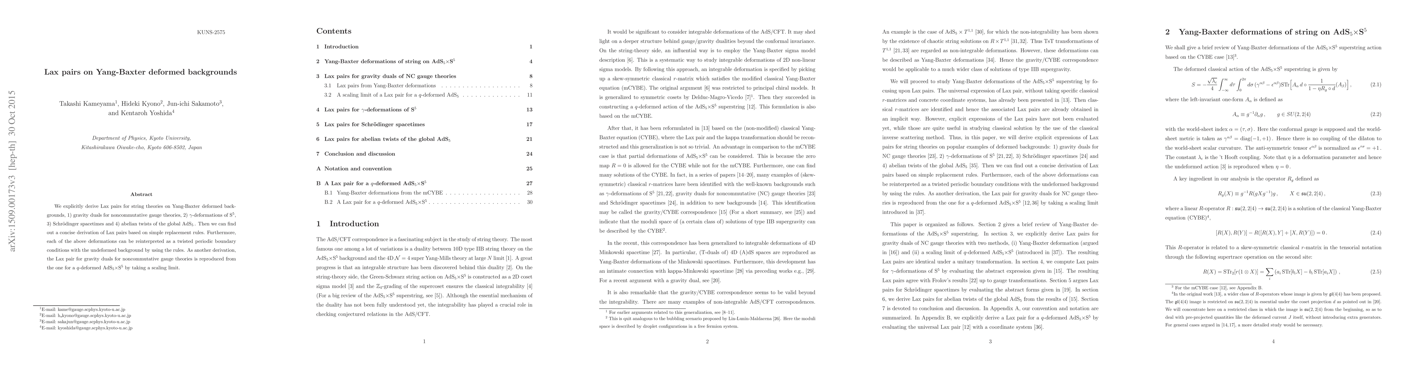 This paper derives Lax pairs for string theories on various Yang-Baxter deformed backgrounds, including gravity duals for noncommutative gauge theories and $\gamma$-deformations of S$^5$, and shows a concise derivation through simple replacement rules. The deformations are reinterpreted via twisted periodic boundary conditions.