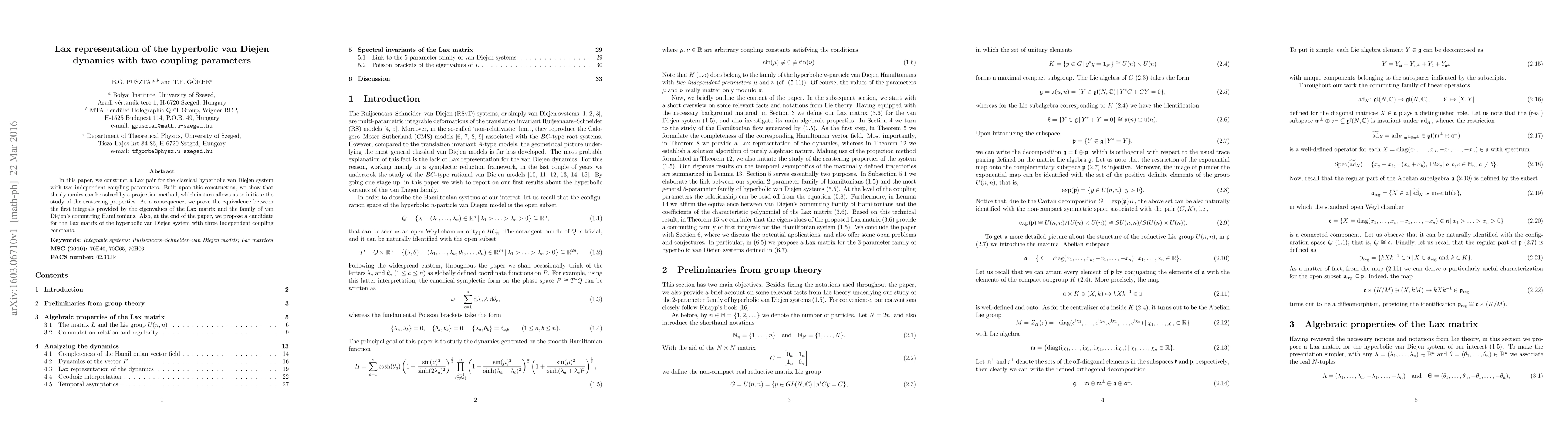 This paper constructs a Lax pair for the hyperbolic van Diejen system with two coupling parameters, enabling the study of scattering properties and proving equivalence between first integrals and commuting Hamiltonians.