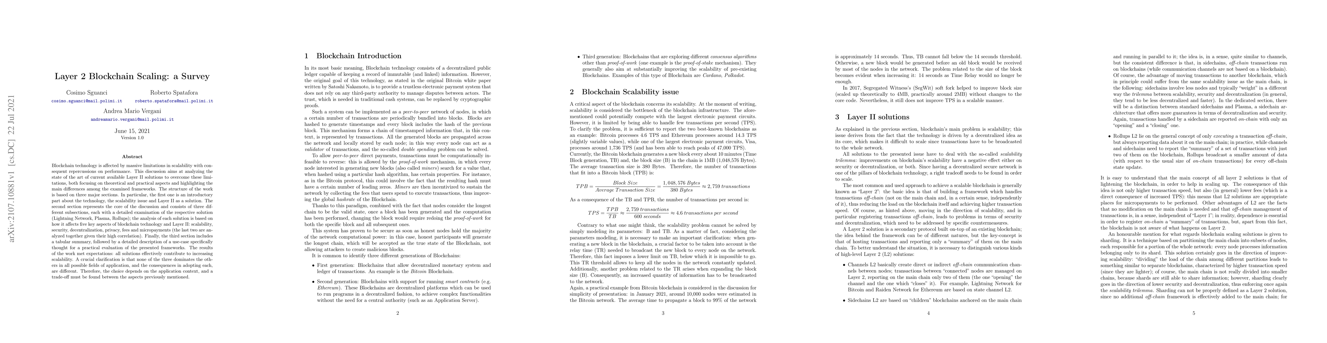 This paper reviews Layer 2 blockchain scaling solutions, analyzing their impact on scalability, security, decentralization, privacy, fees, and micropayments, concluding that each solution has its strengths and weaknesses depending on application context.