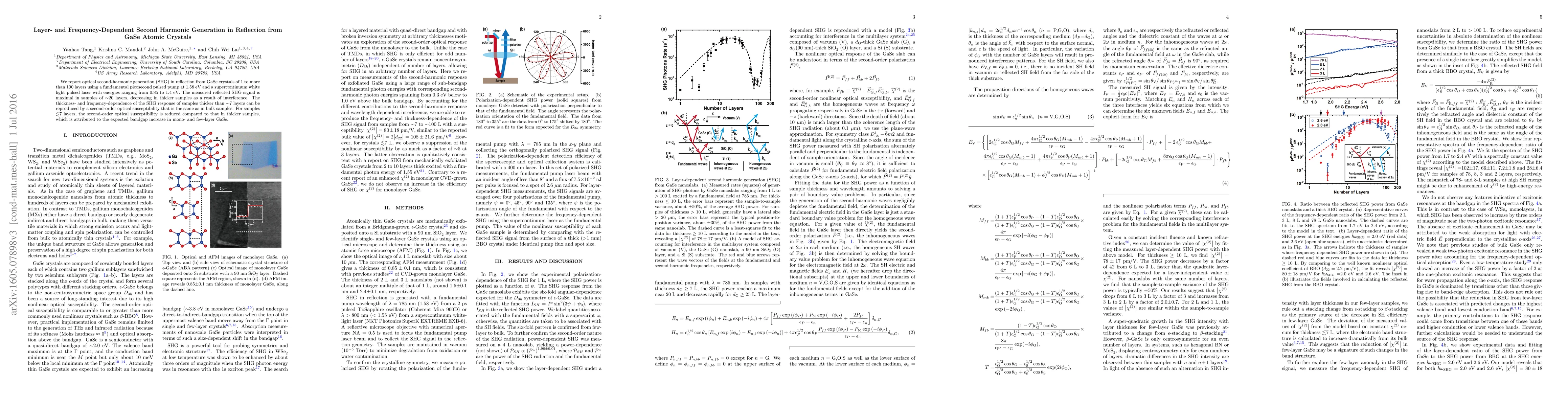 This study investigates second-harmonic generation (SHG) in reflection from GaSe crystals of varying thicknesses, finding that the maximal SHG signal occurs in samples with around 20 layers due to interference effects. The SHG response in thicker samples aligns with bulk susceptibility, while thinner samples exhibit reduced susceptibility, likely due to increased bandgap in mono- and few-layer GaSe.