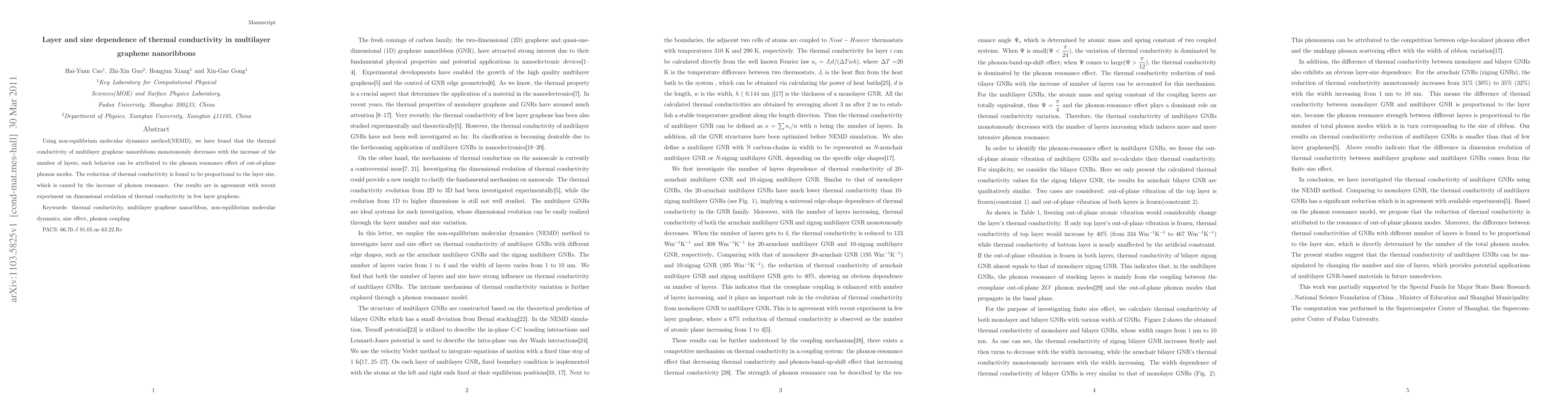 This study using non-equilibrium molecular dynamics reveals that thermal conductivity in multilayer graphene nanoribbons decreases with more layers due to phonon resonance effects, and this reduction is proportional to the layer size, aligning with recent experimental findings on few-layer graphene.