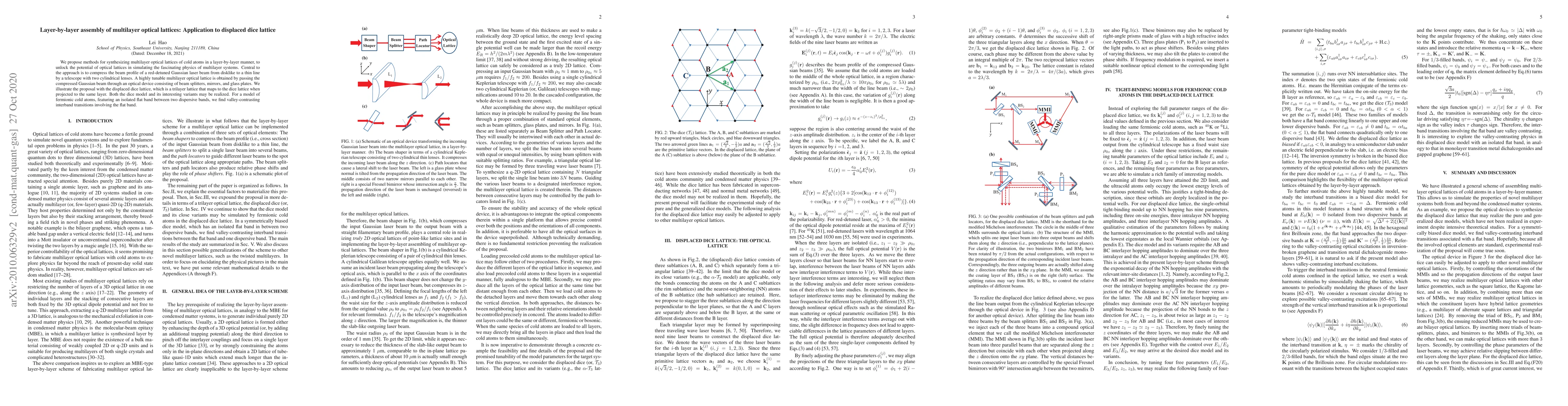 We propose methods for synthesizing multilayer optical lattices of cold atoms in a layer-by-layer manner, to unlock the potential of optical lattices in simulating the fascinating physics of multilayer systems. Central to the approach is to compress the beam profile of a red-detuned Gaussian laser beam from disklike to a thin line by a telescope with two cylindrical lenses. A highly tunable multilayer optical lattice is obtained by passing the compressed Gaussian beam through an optical device consisting of beam splitters, mirrors, and glass plates. We illustrate the proposal with the displaced dice lattice, which is a trilayer lattice that maps to the dice lattice when projected to the same layer. Both the dice model and its interesting variants may be realized. For a model of fermionic cold atoms, featuring an isolated flat band between two dispersive bands, we find valley-contrasting interband transitions involving the flat band.
