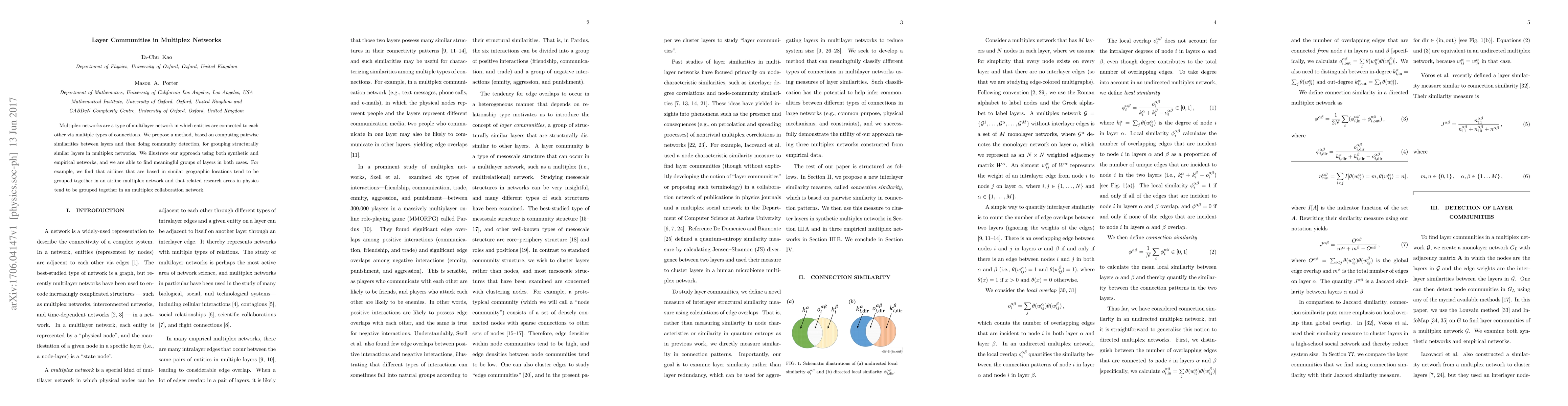 The paper introduces a method for identifying layer communities in multiplex networks by computing pairwise similarities between layers and applying community detection. The approach is demonstrated on synthetic and empirical networks, successfully revealing meaningful groups such as geographically proximate airlines and related research areas in physics.