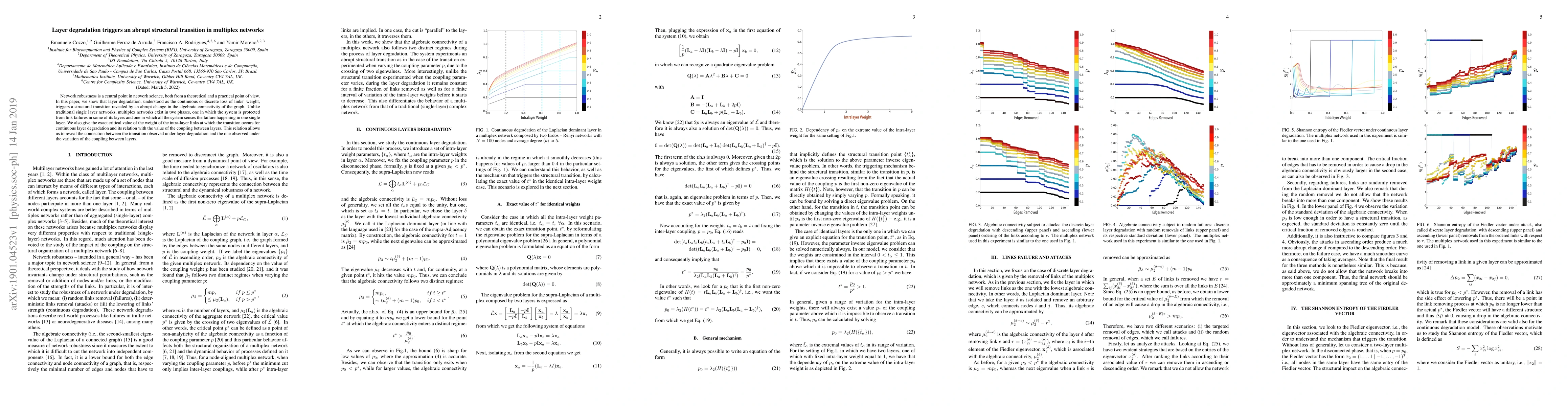This paper investigates how layer degradation in multiplex networks leads to a sudden structural transition, characterized by an abrupt change in algebraic connectivity. It identifies a critical weight threshold for intra-layer links that marks the transition between robustness and vulnerability, linking this to the coupling strength between layers.