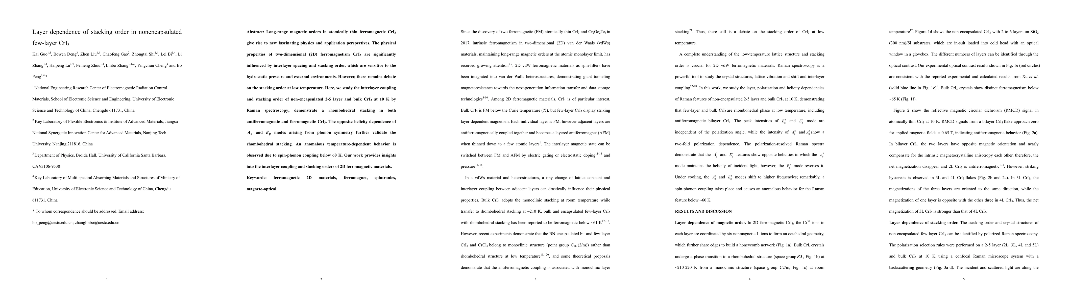 This study investigates the stacking order in non-encapsulated few-layer CrI3 using Raman spectroscopy at 10 K, revealing a rhombohedral stacking in both antiferromagnetic and ferromagnetic phases. Anomalous temperature-dependent behavior below 60 K is attributed to spin-phonon coupling, offering insights into interlayer coupling in 2D ferromagnetic materials.