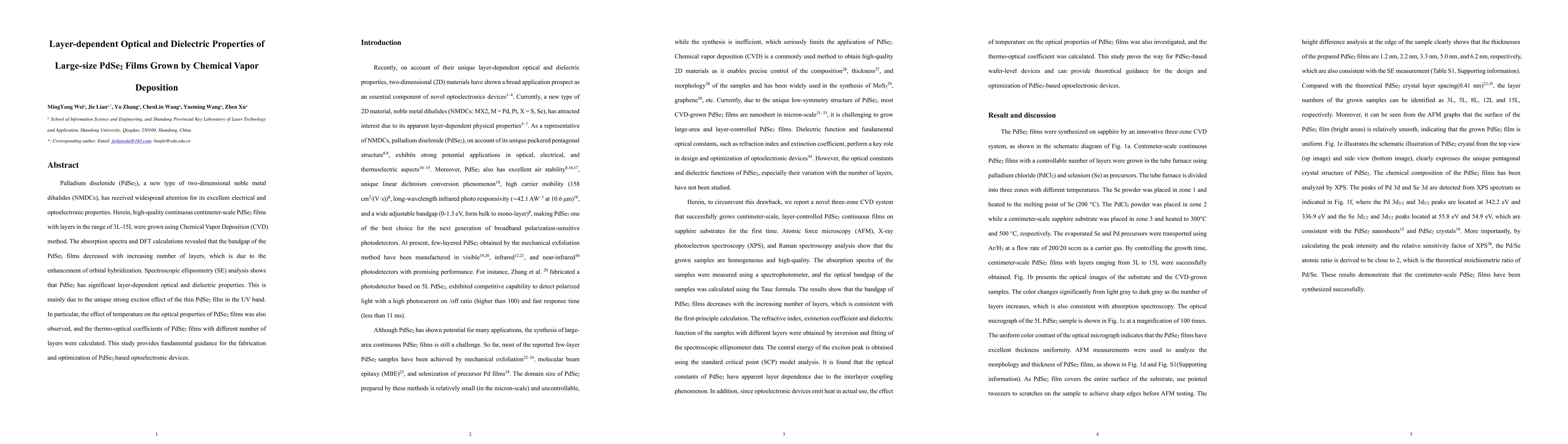 Palladium diselenide (PdSe$_2$), a new type of two-dimensional noble metal dihalides (NMDCs), has received widespread attention for its excellent electrical and optoelectronic properties. Herein, high-quality continuous centimeter-scale PdSe$_2$ films with layers in the range of 3L-15L were grown using Chemical Vapor Deposition (CVD) method. The absorption spectra and DFT calculations revealed that the bandgap of the PdSe$_2$ films decreased with increasing number of layers, which is due to PdSe$_2$ enhancement of orbital hybridization. Spectroscopic ellipsometry (SE) analysis shows that PdSe2 has significant layer-dependent optical and dielectric properties. This is mainly due to the unique strong exciton effect of the thin PdSe$_2$ film in the UV band. In particular, the effect of temperature on the optical properties of PdSe$_2$ films was also observed, and the thermo-optical coefficients of PdSe$_2$ films with different number of layers were calculated. This study provides fundamental guidance for the fabrication and optimization of PdSe$_2$-based optoelectronic devices.