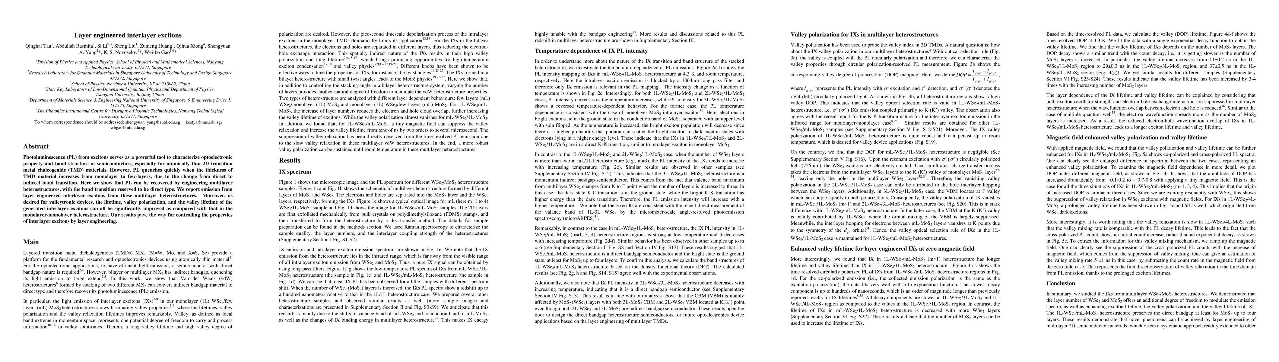 Researchers developed a method to recover photoluminescence from excitons in multilayer materials, improving their lifetime, valley polarization, and valley lifetime compared to monolayer-monolayer heterostructures.