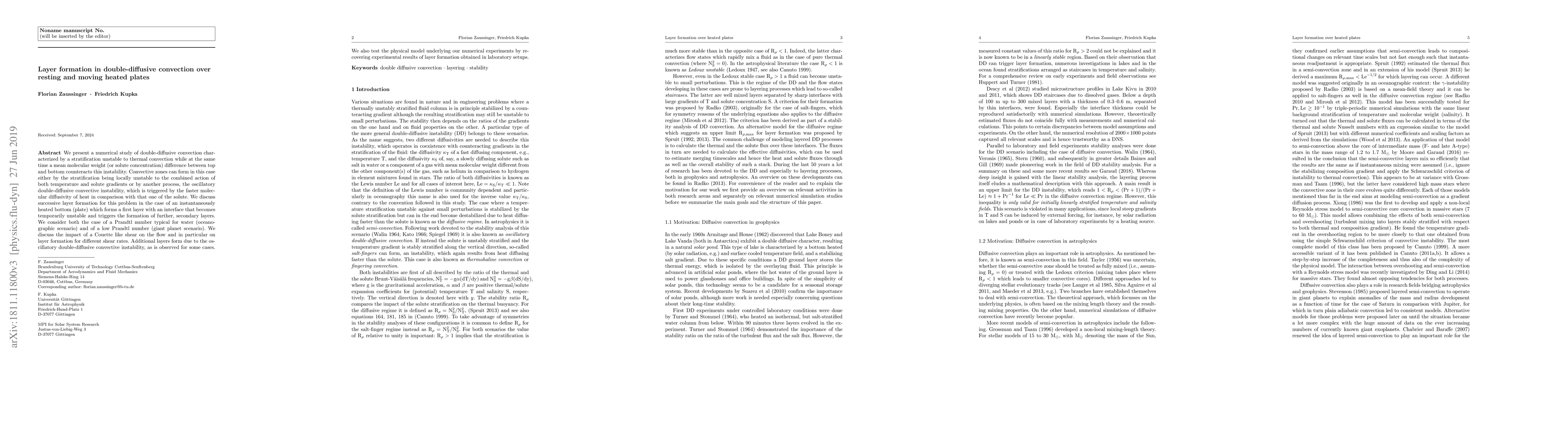 This paper presents a numerical study on double-diffusive convection in stratified fluids, focusing on layer formation over heated and moving plates. It examines the impact of both thermal and solute gradients on convection and the role of oscillatory instabilities, comparing scenarios with different Prandtl numbers and observing the effects of shear on layer formation.