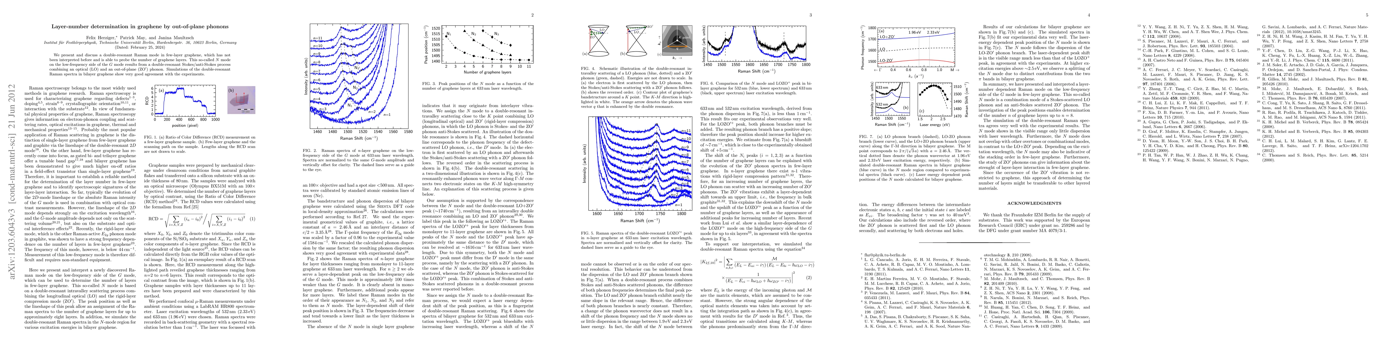 This study identifies a double-resonant Raman mode in few-layer graphene, termed the N mode, to reliably determine the number of graphene layers via out-of-plane vibrations. Simulations and experiments confirm the mode's effectiveness, suggesting its potential applicability to other layered materials such as boron nitride.
