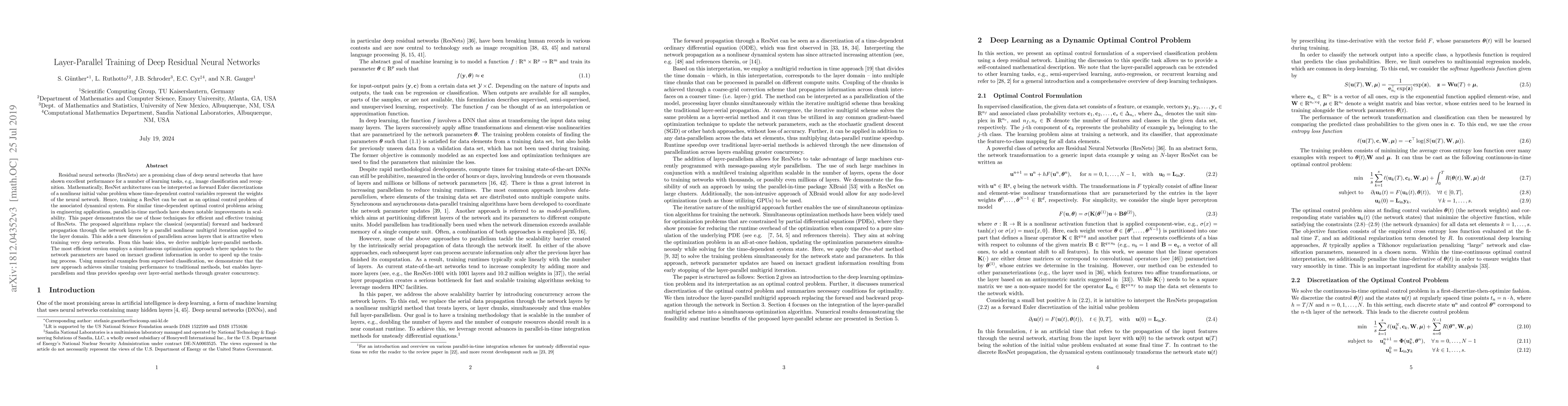 This paper proposes layer-parallel training methods for deep residual neural networks (ResNets) using parallel-in-time optimal control techniques, achieving significant speedup through concurrency compared to traditional sequential training methods. The new approach employs simultaneous optimization with inexact gradient information for efficient training.