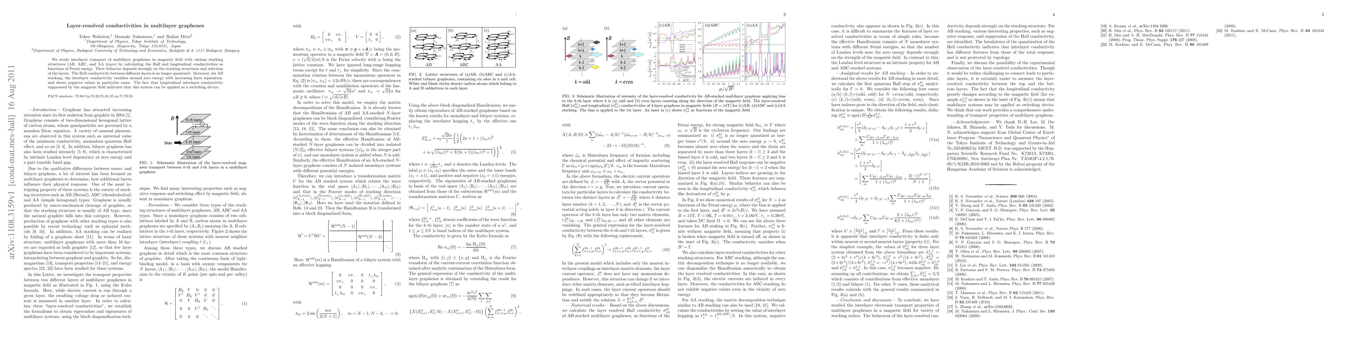 The paper presents a detailed theoretical analysis of layer-resolved conductivities in multilayer graphenes under magnetic fields, employing matrix decomposition techniques to solve the Hamiltonian for various stacking structures.