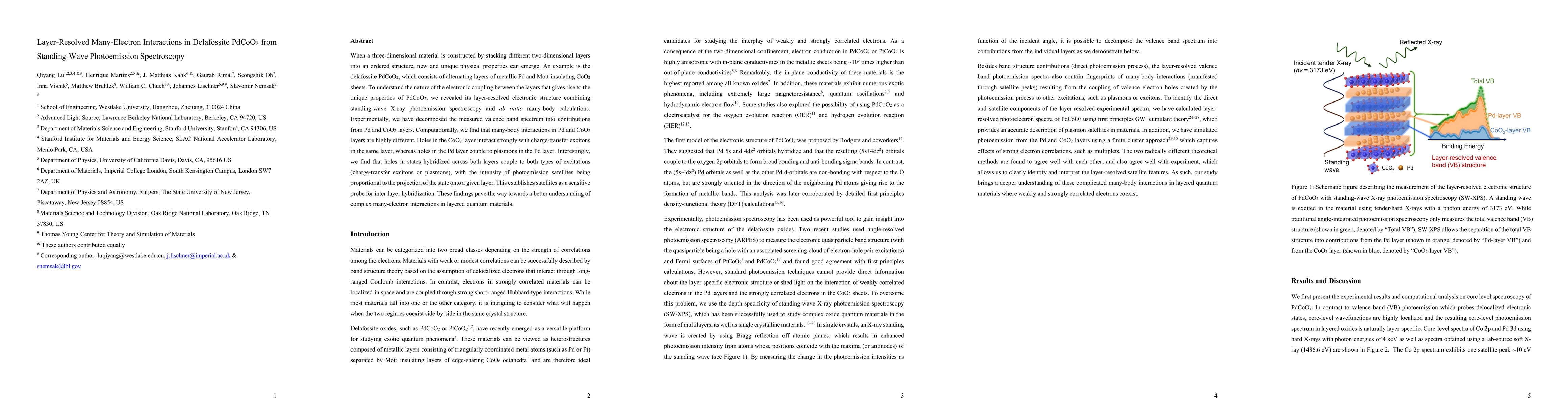 Researchers used standing-wave photoemission spectroscopy to study delafossite PdCoO2, revealing unique electronic interactions between its metallic and Mott-insulating layers. They found that holes in different layers couple to distinct excitations, enabling satellites as a probe for inter-layer hybridization.