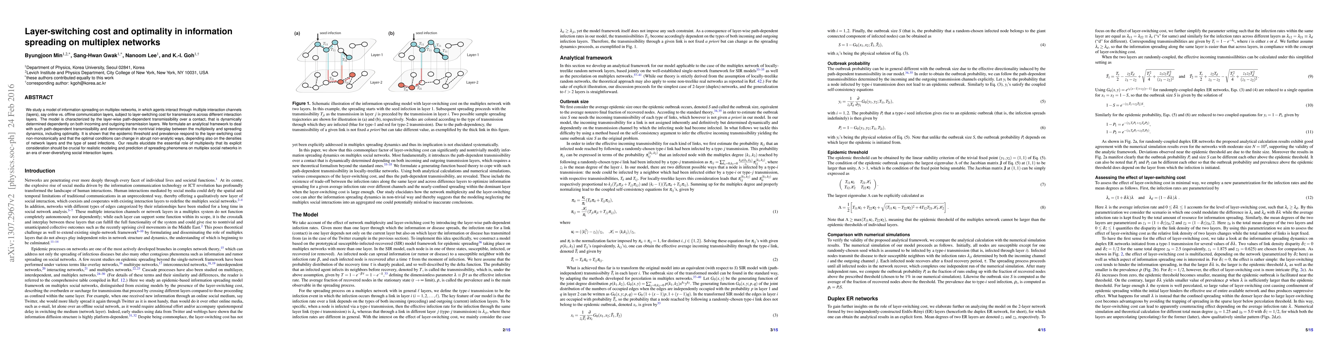 We study a model of information spreading on multiplex networks, in which agents interact through multiple interaction channels (layers), say online vs.\ offline communication layers, subject to layer-switching cost for transmissions across different interaction layers. The model is characterized by the layer-wise path-dependent transmissibility over a contact, that is dynamically determined dependently on both incoming and outgoing transmission layers. We formulate an analytical framework to deal with such path-dependent transmissibility and demonstrate the nontrivial interplay between the multiplexity and spreading dynamics, including optimality. It is shown that the epidemic threshold and prevalence respond to the layer-switching cost non-monotonically and that the optimal conditions can change in abrupt non-analytic ways, depending also on the densities of network layers and the type of seed infections. Our results elucidate the essential role of multiplexity that its explicit consideration should be crucial for realistic modeling and prediction of spreading phenomena on multiplex social networks in an era of ever-diversifying social interaction layers.