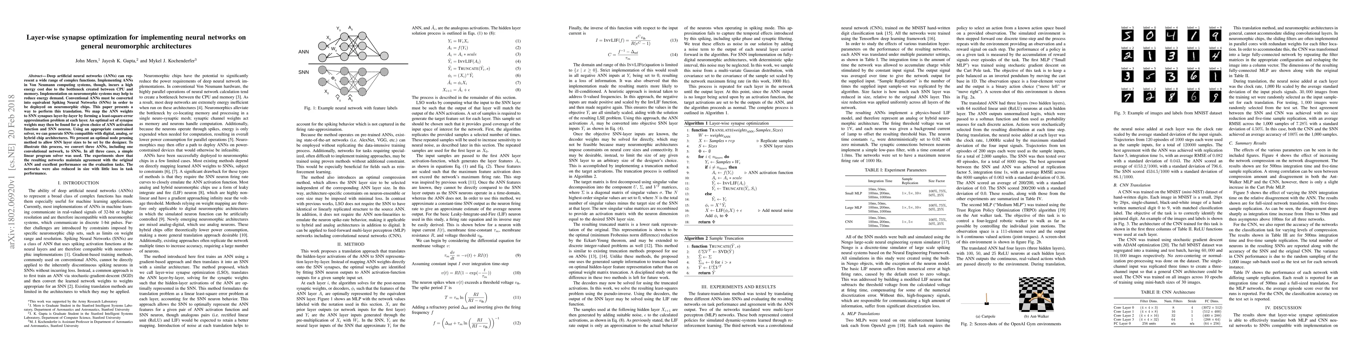 Deep artificial neural networks (ANNs) can represent a wide range of complex functions. Implementing ANNs in Von Neumann computing systems, though, incurs a high energy cost due to the bottleneck created between CPU and memory. Implementation on neuromorphic systems may help to reduce energy demand. Conventional ANNs must be converted into equivalent Spiking Neural Networks (SNNs) in order to be deployed on neuromorphic chips. This paper presents a way to perform this translation. We map the ANN weights to SNN synapses layer-by-layer by forming a least-square-error approximation problem at each layer. An optimal set of synapse weights may then be found for a given choice of ANN activation function and SNN neuron. Using an appropriate constrained solver, we can generate SNNs compatible with digital, analog, or hybrid chip architectures. We present an optimal node pruning method to allow SNN layer sizes to be set by the designer. To illustrate this process, we convert three ANNs, including one convolutional network, to SNNs. In all three cases, a simple linear program solver was used. The experiments show that the resulting networks maintain agreement with the original ANN and excellent performance on the evaluation tasks. The networks were also reduced in size with little loss in task performance.