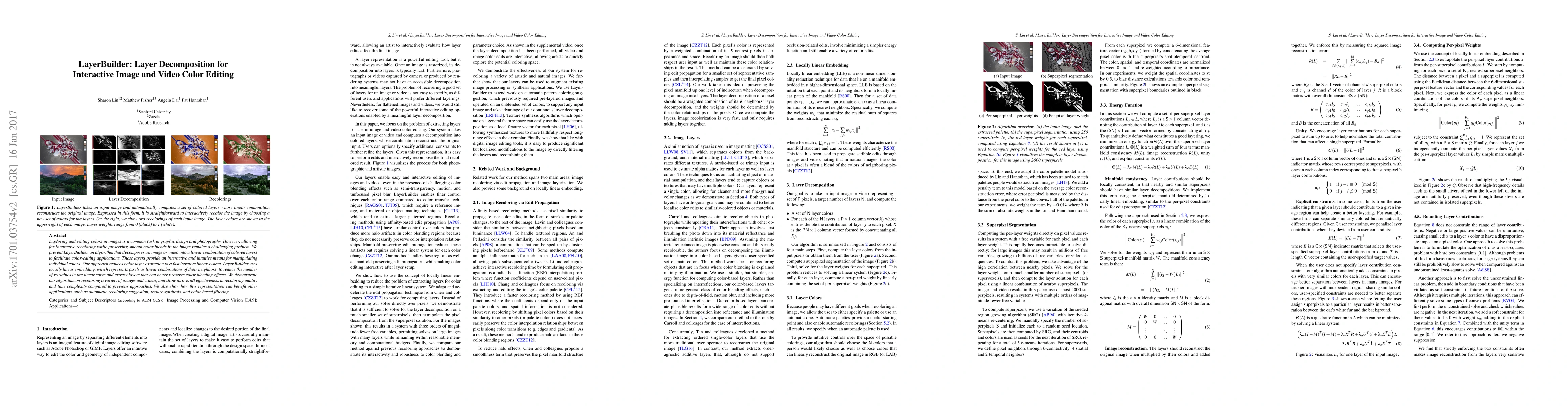 Exploring and editing colors in images is a common task in graphic design and photography. However, allowing for interactive recoloring while preserving smooth color blends in the image remains a challenging problem. We present LayerBuilder, an algorithm that decomposes an image or video into a linear combination of colored layers to facilitate color-editing applications. These layers provide an interactive and intuitive means for manipulating individual colors. Our approach reduces color layer extraction to a fast iterative linear system. Layer Builder uses locally linear embedding, which represents pixels as linear combinations of their neighbors, to reduce the number of variables in the linear solve and extract layers that can better preserve color blending effects. We demonstrate our algorithm on recoloring a variety of images and videos, and show its overall effectiveness in recoloring quality and time complexity compared to previous approaches. We also show how this representation can benefit other applications, such as automatic recoloring suggestion, texture synthesis, and color-based filtering.